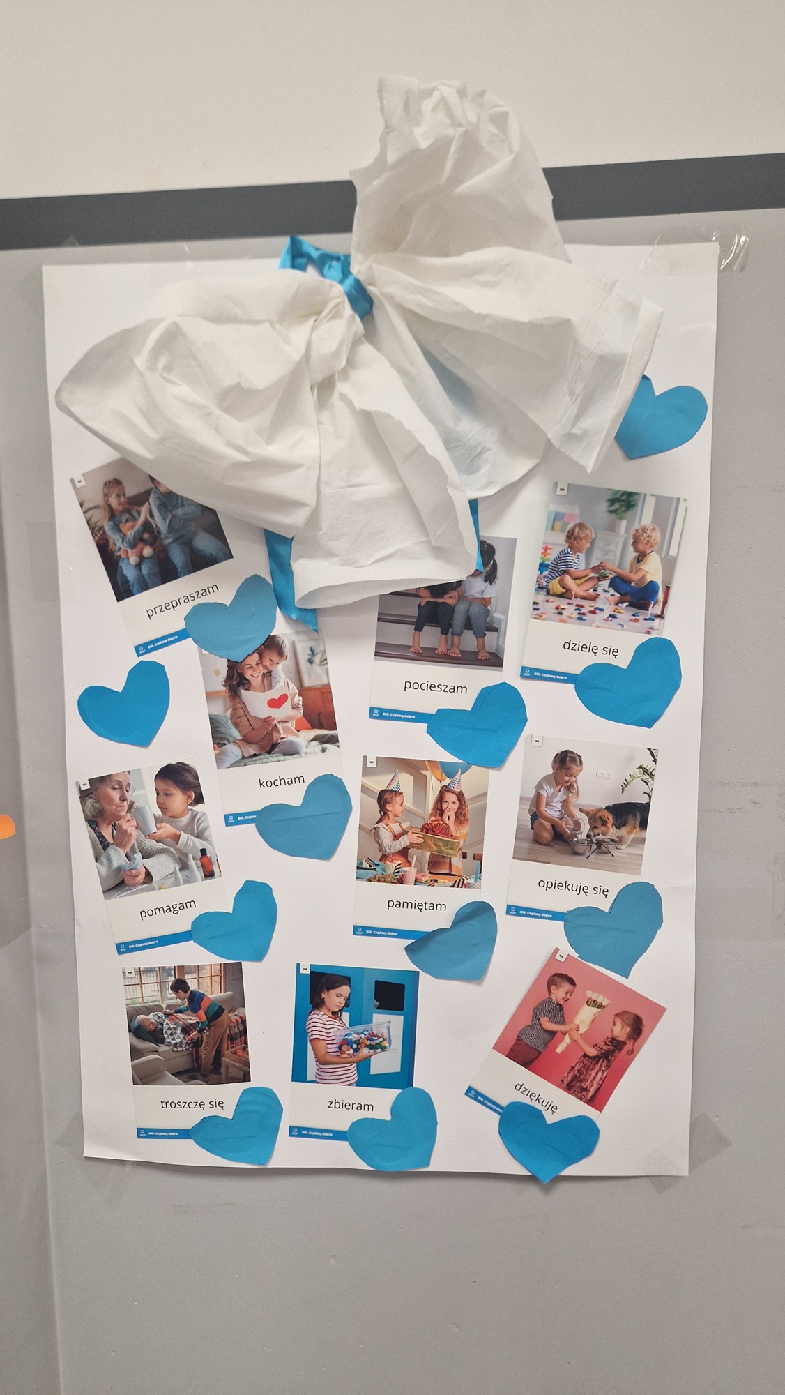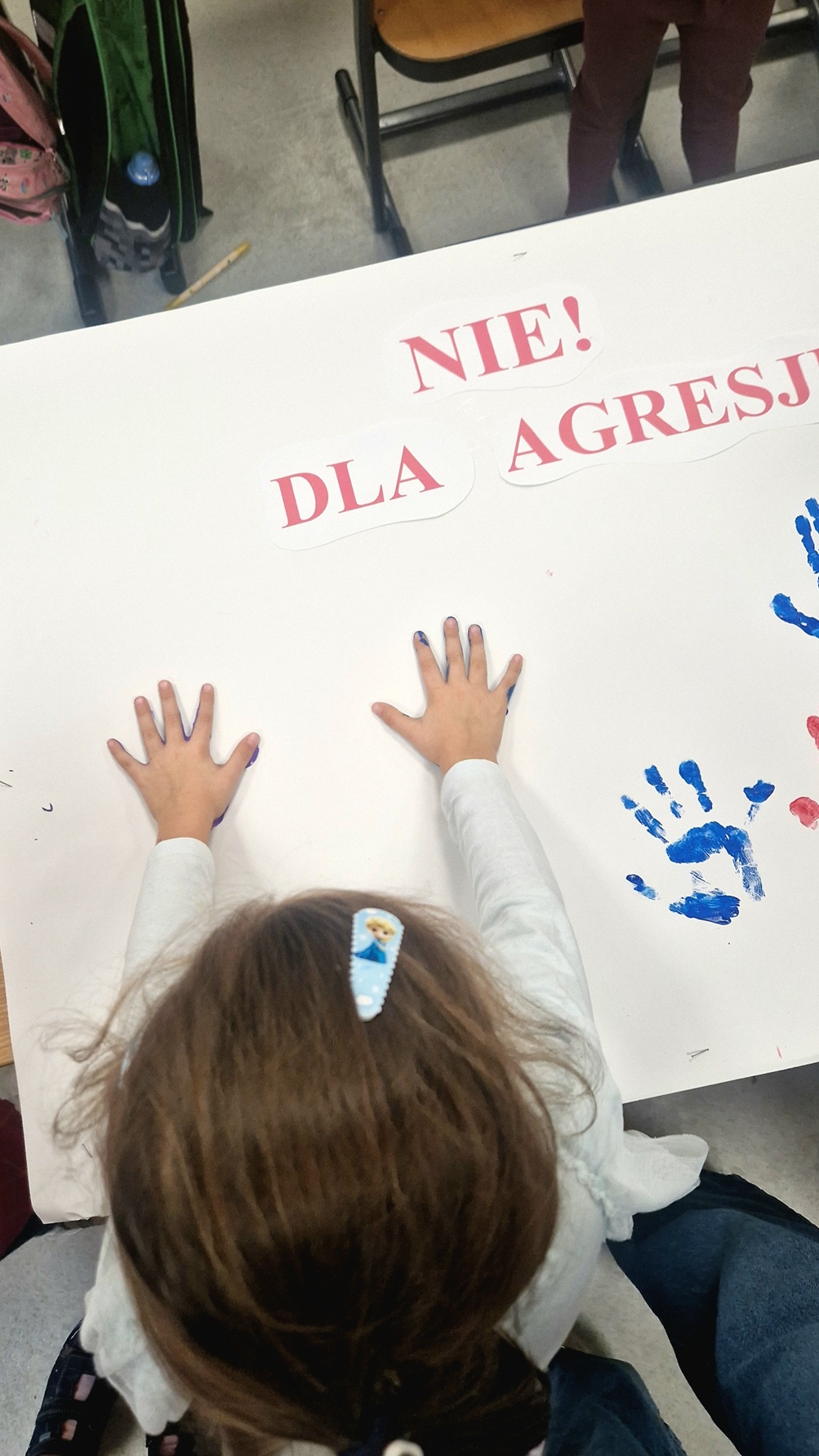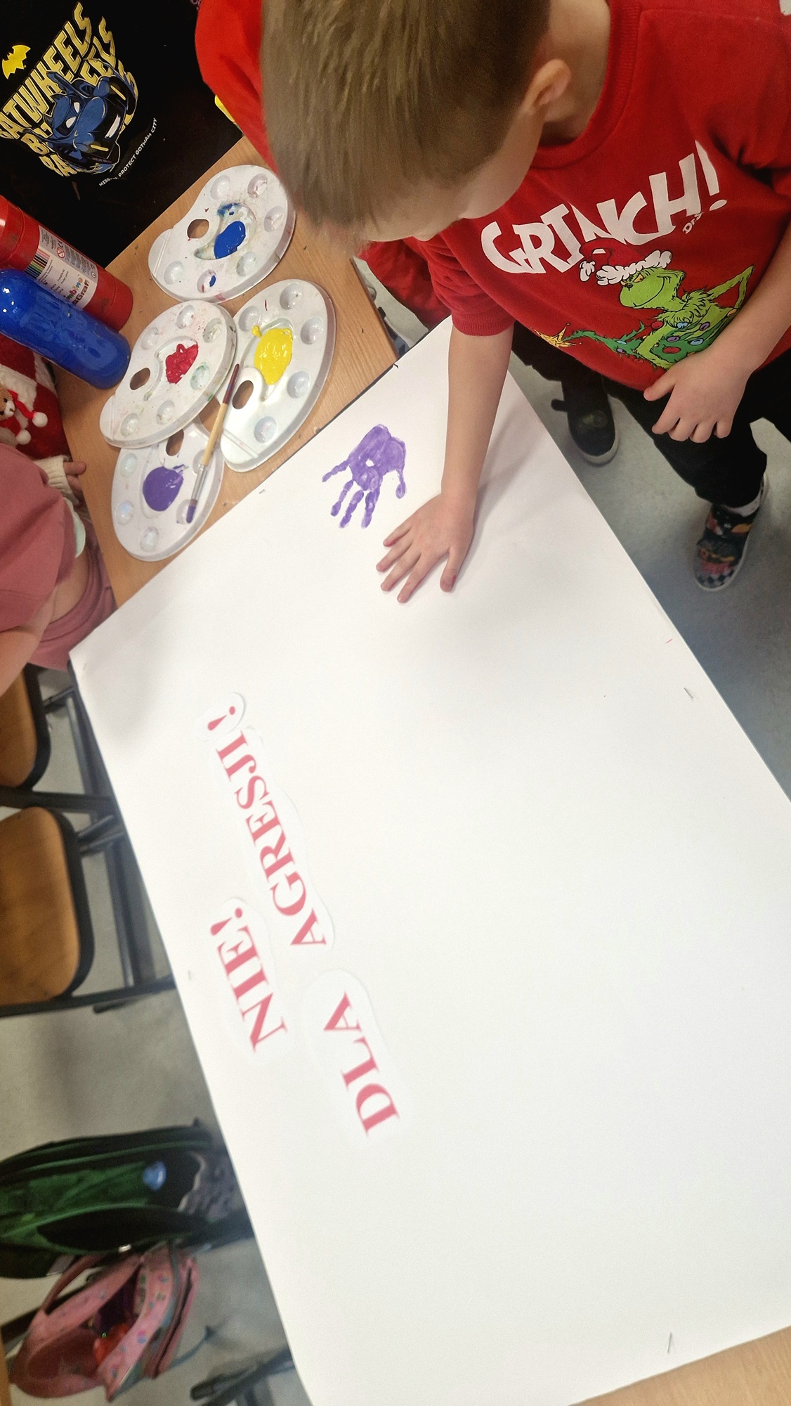W ramach kampanii Biała Wstążka w klasie 0b, realizowane były zajęcia poświęcone życzliwości, szacunku i emocjom. Dzieci brały udział w rozmowach, zabawach integracyjnych oraz wykonały 2 plakaty – symbol dobra i gotowości do pomagania oraz plakat „Nie dla agresji”. Celem zajęć było wzmacniania empatii, rozwijanie umiejętności komunikacji oraz budowanie bezpieczeństwa i wzajemnego wsparcia.