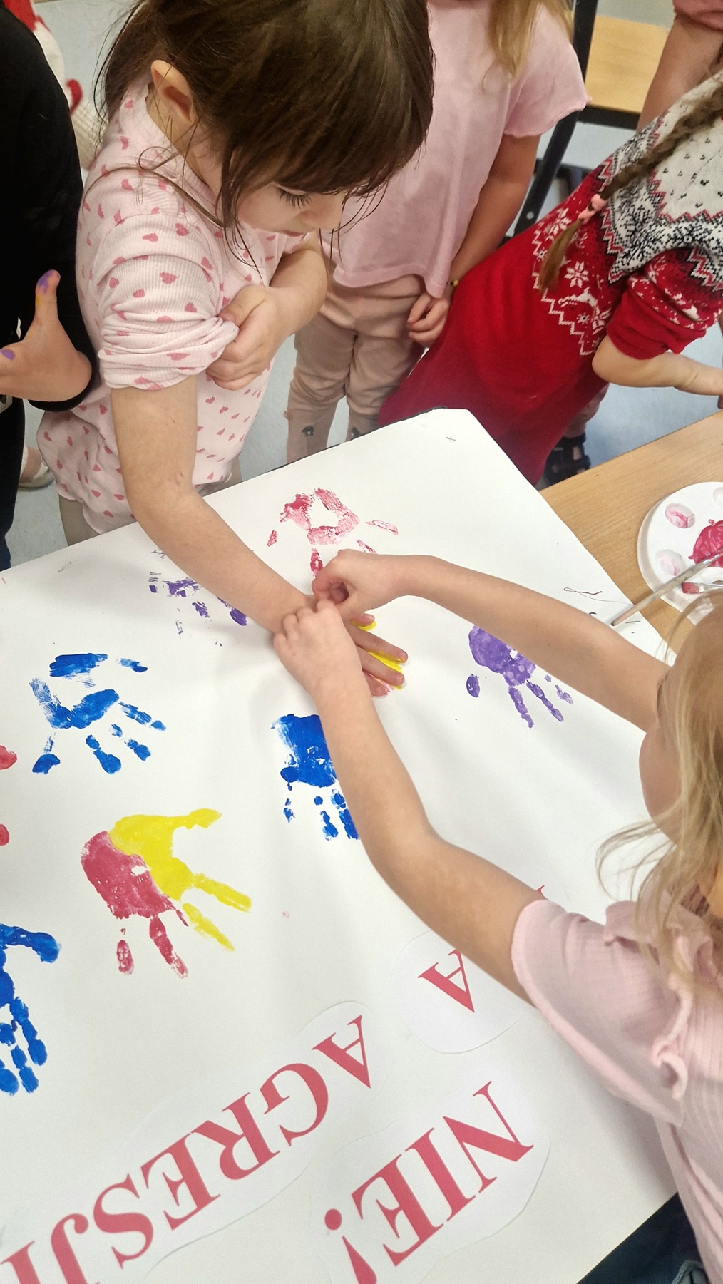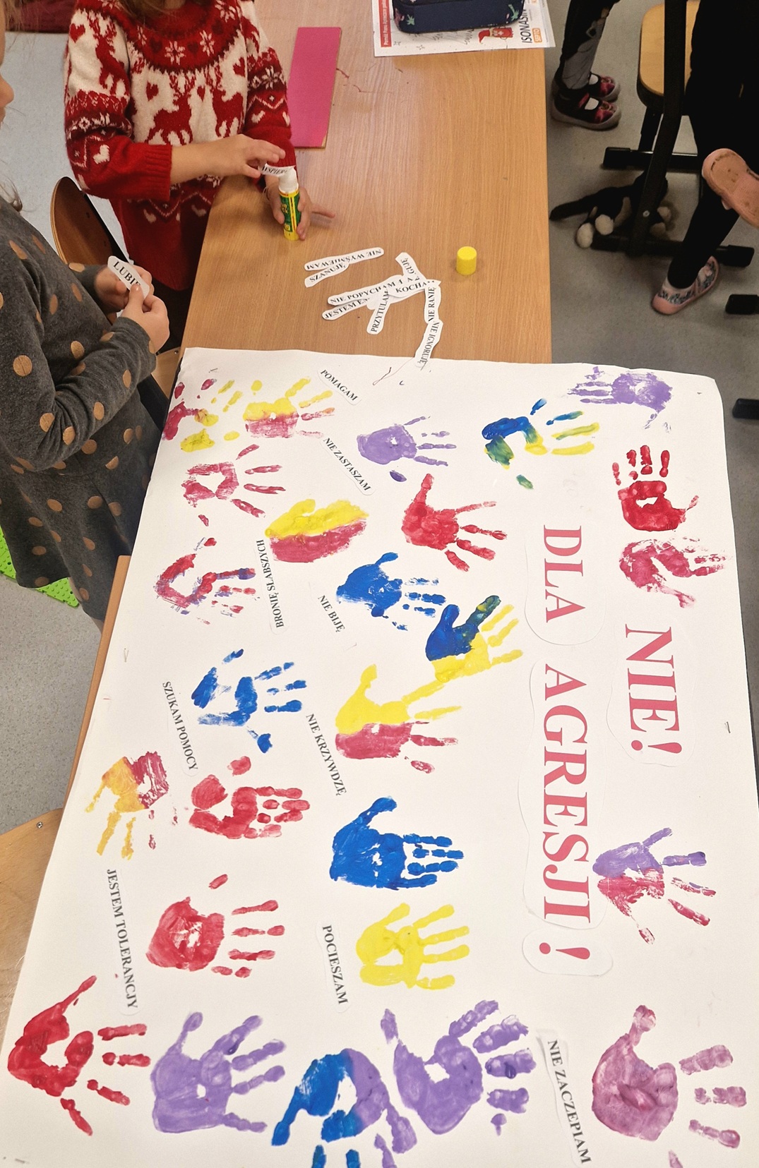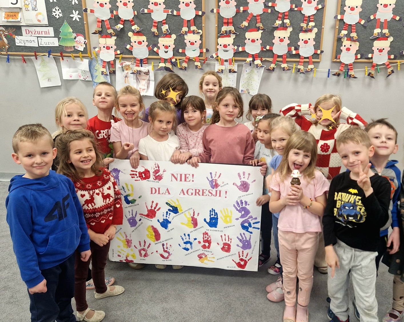 W ramach kampanii Biała Wstążka w klasie 0b, realizowane były zajęcia poświęcone życzliwości, szacunku i emocjom. Dzieci brały udział w rozmowach, zabawach integracyjnych oraz wykonały 2 plakaty – symbol dobra i gotowości do pomagania oraz plakat „Nie dla agresji”. Celem zajęć było wzmacniania empatii, rozwijanie umiejętności komunikacji oraz budowanie bezpieczeństwa i wzajemnego wsparcia.