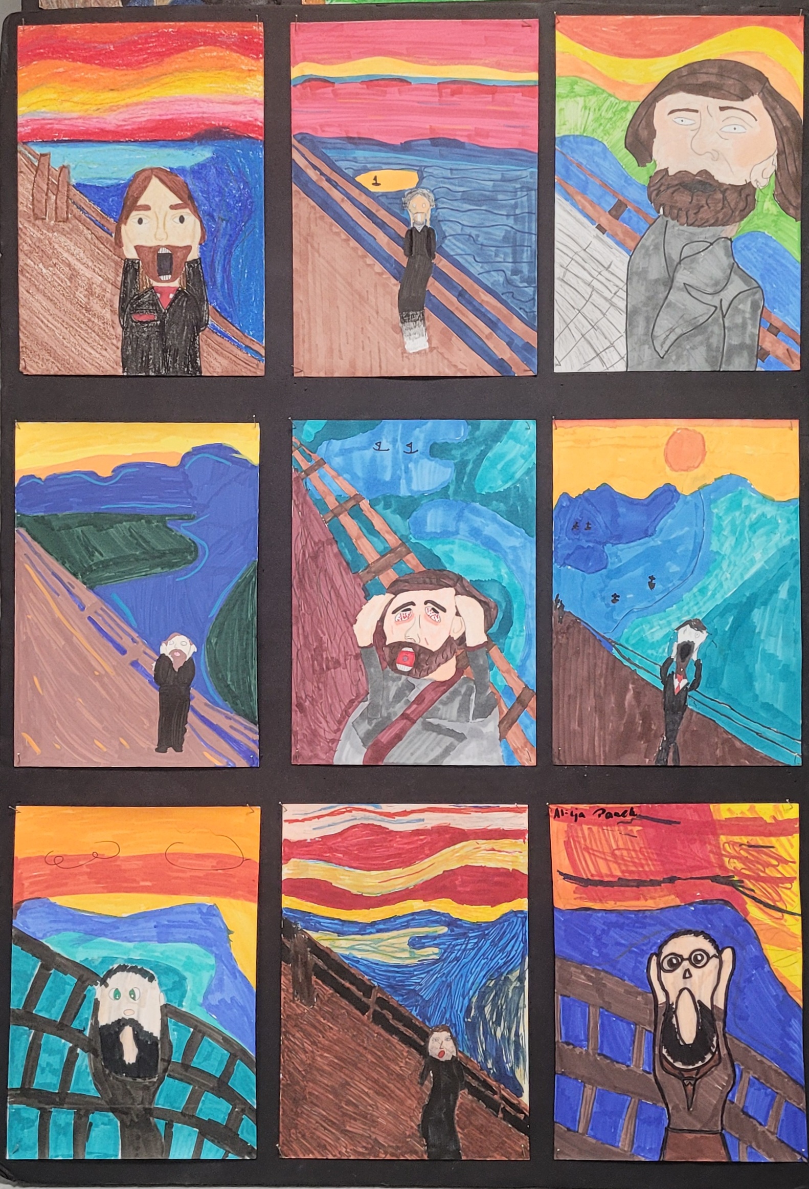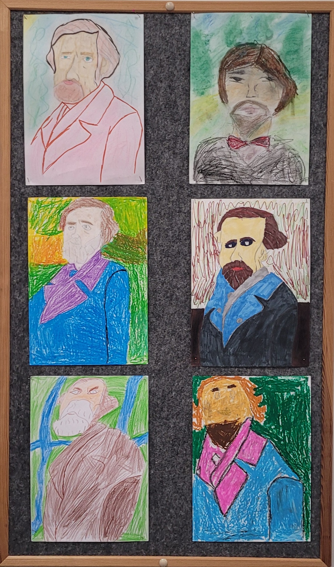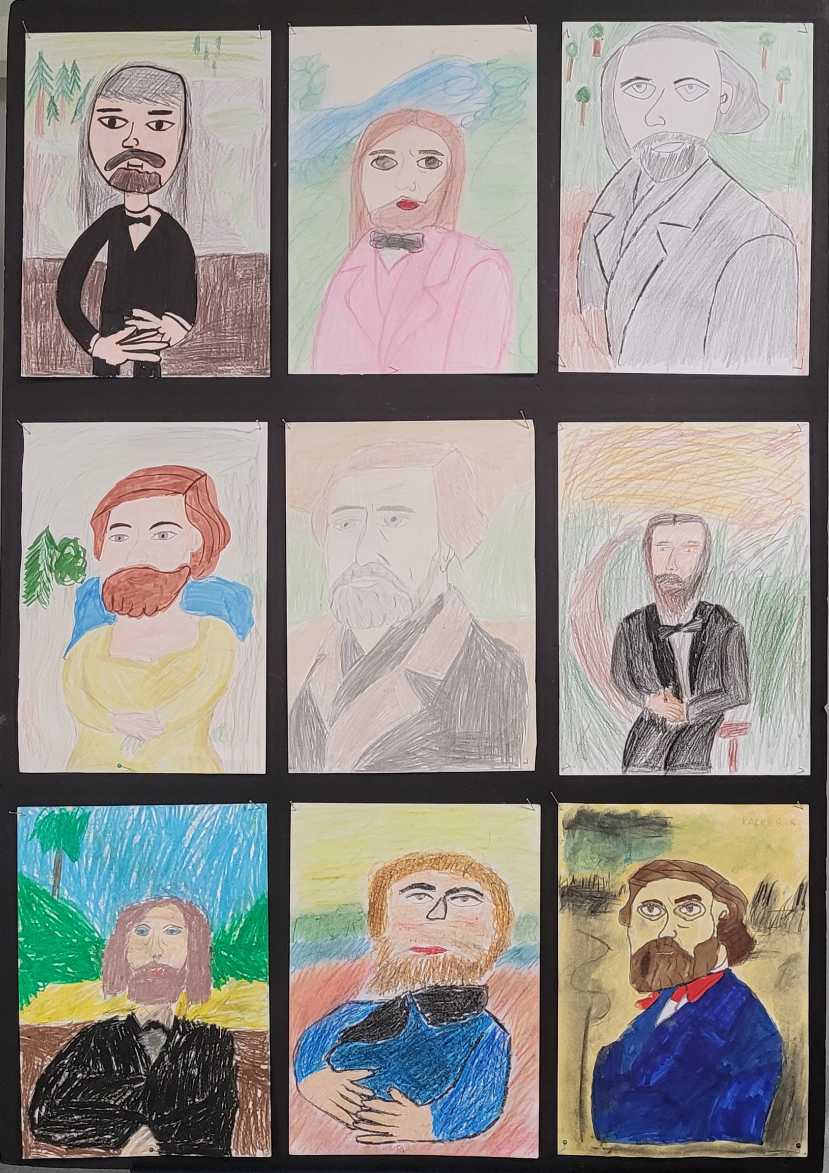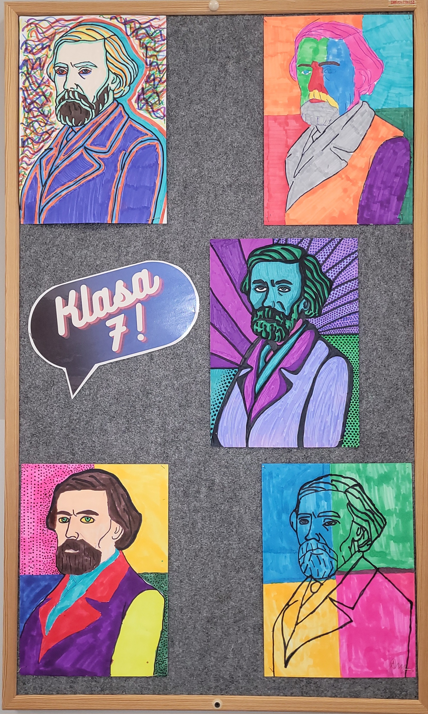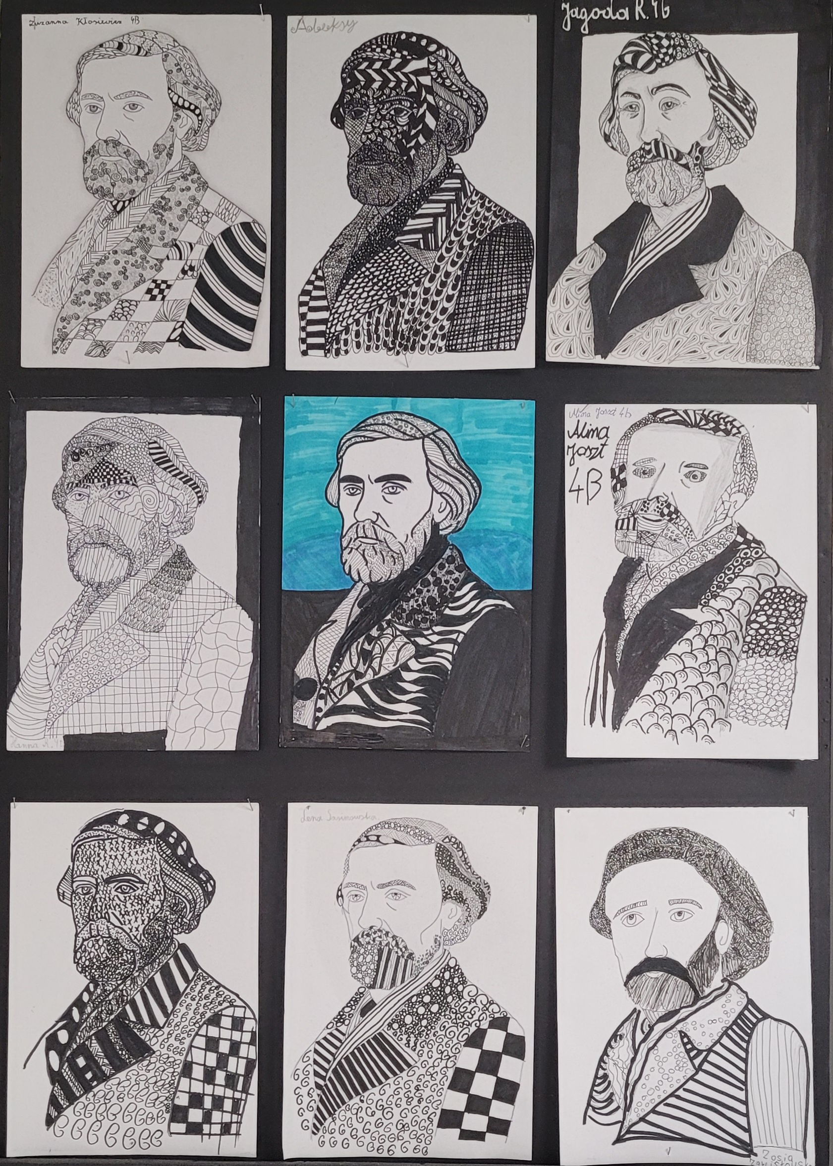 24.09.25 r. obchodziliśmy Święto Szkoły, urodziny naszego patrona - Cypriana Kamila Norwida. Z tej okazji uczniowie klas 4 -7 podczas lekcji plastyki stworzyli przepiękne portrety inspirowane różnymi stylami w sztuce. Powstały portrety Norwida w stylu zentangle, Norwid w obrazie Edvarda Muncha "Krzyk", Norwid w stylu Mona Lisy Leonarda da Vinci, puentylizmu, impresjonizmu Vincenta Van Gogha, czy pop art Andy'ego Warhola.