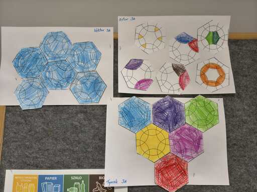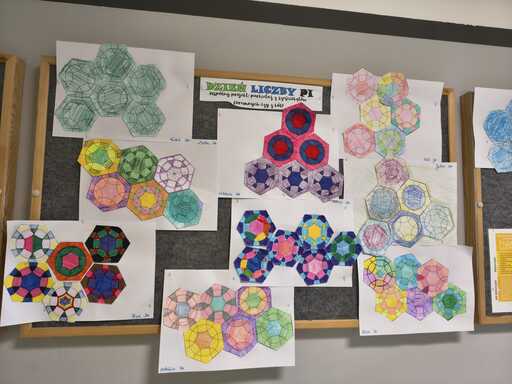 Z okazji Dnia liczby π w klasach 4-8 odbył się konkurs na wykonanie najbardziej kreatywnej poduszki z elementami tajemniczej ludolfiny, klasy młodsze wykonywały pracę projektową- geometryczny kolaż.