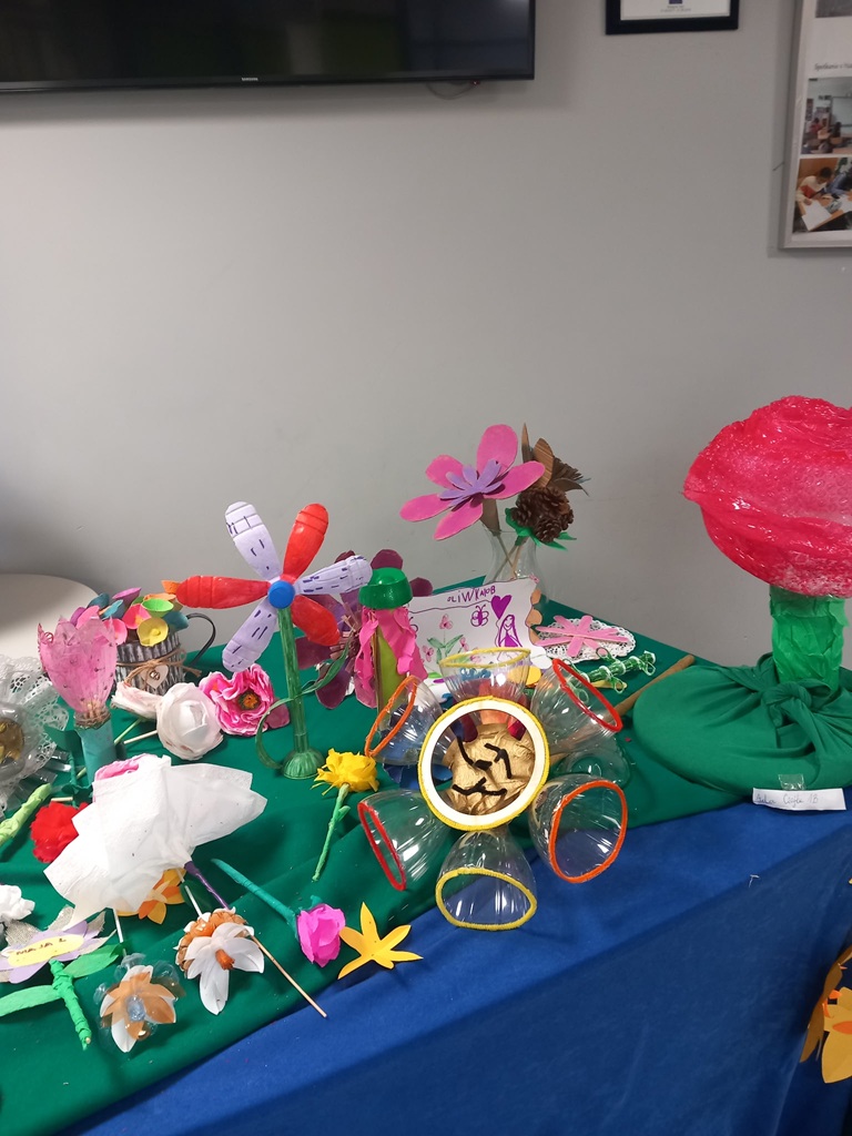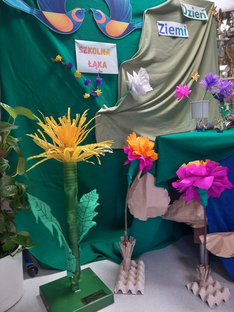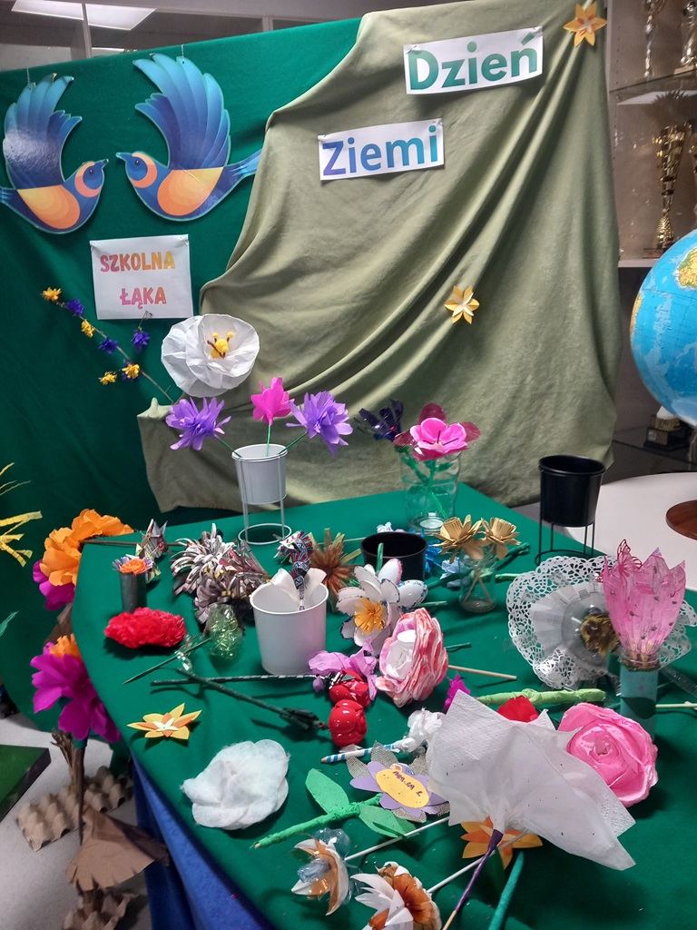 W środę, 22 kwietnia, w naszej szkole zrobiło się naprawdę zielono i kolorowo – a to wszystko za sprawą obchodów Dnia Ziemi! Z tej okazji uczniowie wykazali się ogromną kreatywnością i zaangażowaniem, tworząc przepiękne eko-kwiaty z różnych materiałów. Powstały prawdziwe małe dzieła sztuki! Następnie z tych wyjątkowych kwiatów stworzyliśmy szkolną łąkę, która rozkwitła na korytarzu i wywoływała uśmiech na twarzach wszystkich. To był nie tylko świetny sposób na wspólną zabawę, ale także ważna lekcja dbania o naszą planetę. Pokazaliśmy, że nawet z prostych rzeczy można stworzyć coś pięknego i jednocześnie ekologicznego! Dzień Ziemi w naszej szkole na pewno na długo pozostanie w pamięci!