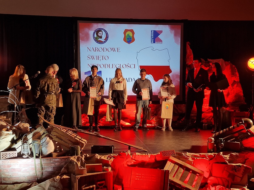Podczas uroczystości, przygotowanej we współpracy z "PAWILONEM KULTURY" Gminnym Ośrodkiem Kultury w Wiązownie, odbyło się wręczenie nagród laureatom gminnych konkursów patriotycznych, które w piękny sposób połączyły historię, sztukę i miłość do Polski. Mieliśmy okazję wysłuchać również recytacji wierszy nagrodzonych uczniów – ich słowa, pełne emocji i refleksji, przypomniały nam, że pamięć o bohaterach może żyć w poezji i młodych sercach.