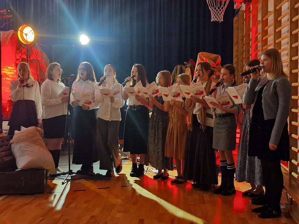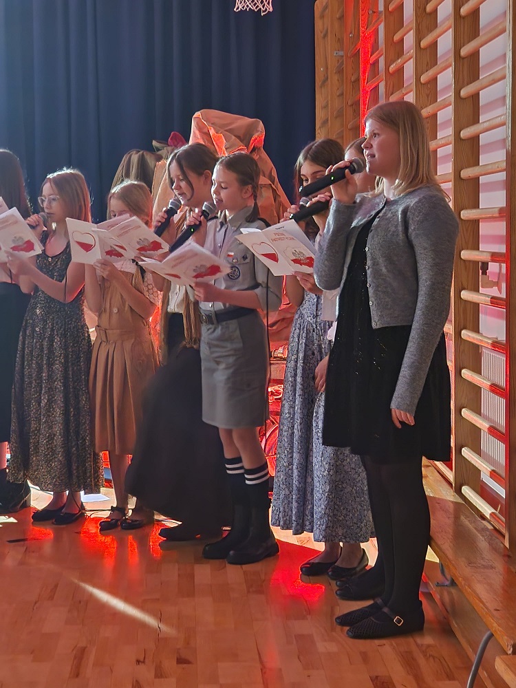 Kulminacyjnym punktem obchodów był wzruszający montaż słowno-muzyczny „Budowałam barykadę”, inspirowany poezją Anny Świrszczyńskiej, w którym uczniowie przywołali wspomnienia z Powstania Warszawskiego. Nie zabrakło również wspólnego śpiewania pieśni patriotycznych – pełnych siły, wiary i nadziei – które od pokoleń jednoczą Polaków.