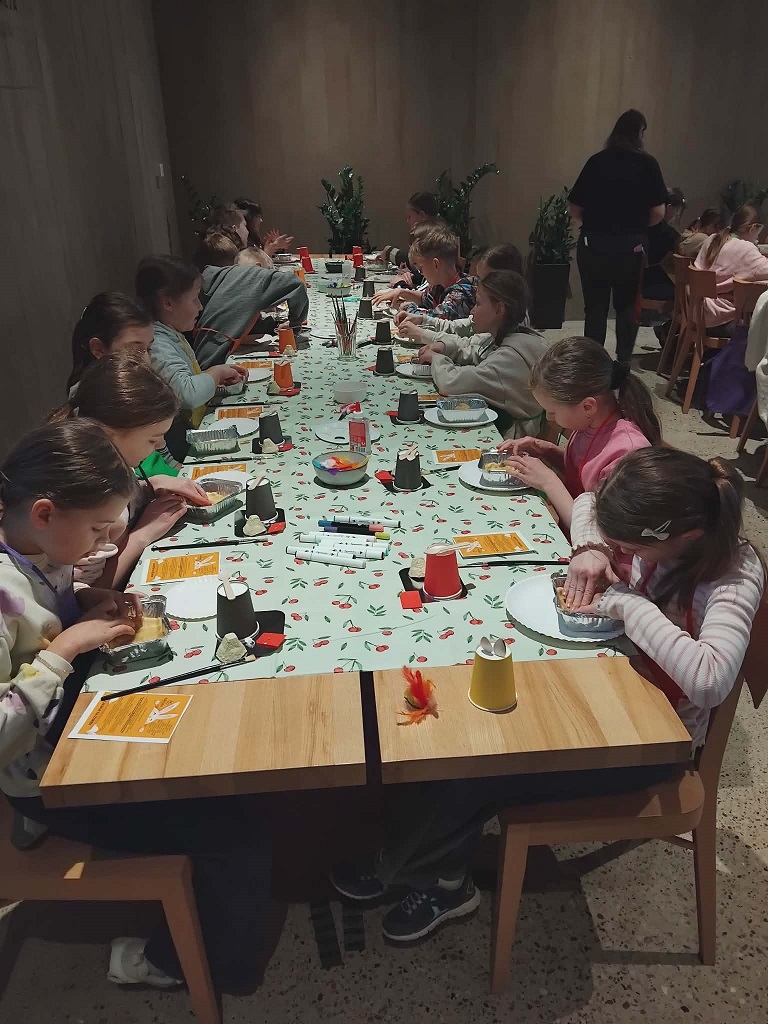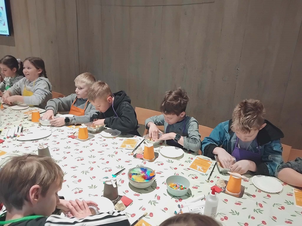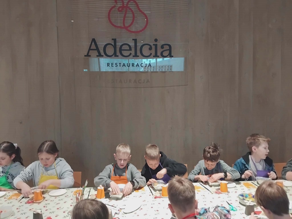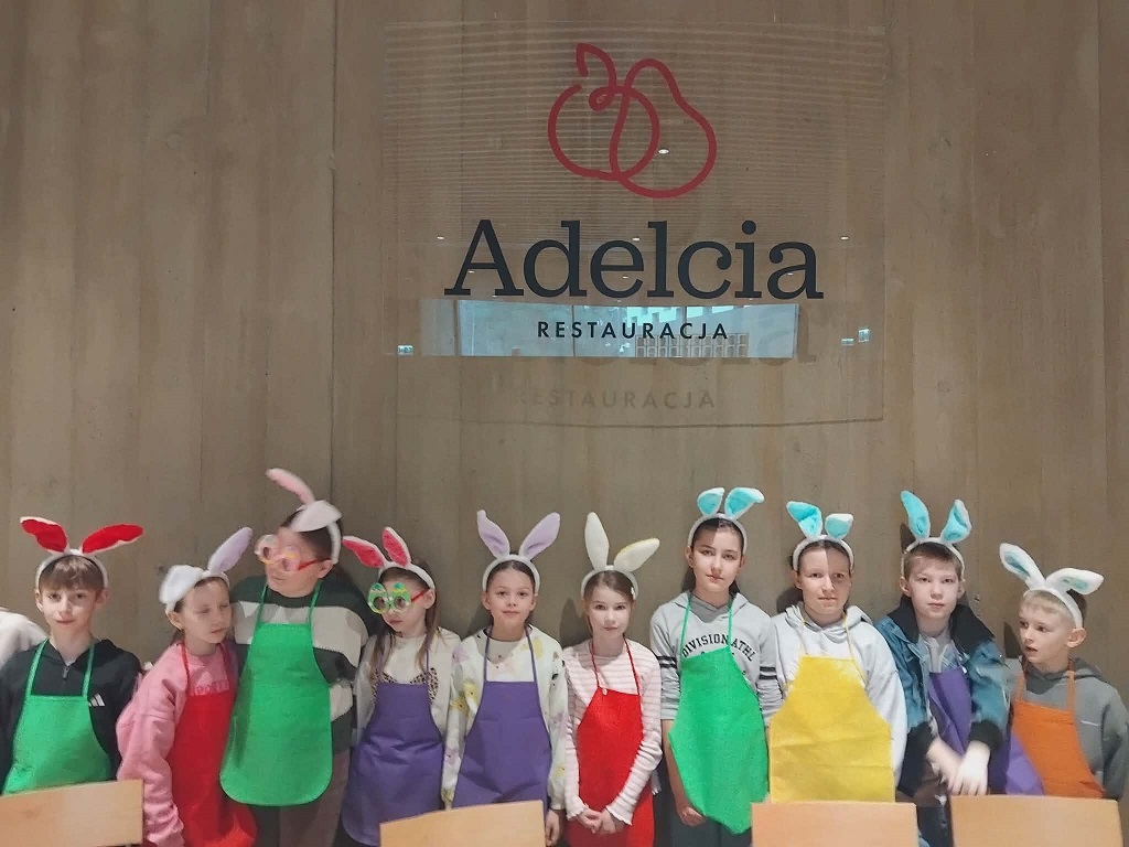 Nasi trzecioklasiści odwiedzili dziś restaurację Adelcia w Sulejówku, by wziąć udział w warsztatach „Kurki, żurki i mazurki”. Dzieci zamieniły się w małych cukierników i własnoręcznie dekorowały wielkanocne mazurki. Powstały prawdziwe, jadalne dzieła sztuki! Oprócz słodkości, uczniowie dowiedzieli się też, jak przygotować tradycyjny zakwas na żurek i poznali świąteczne zwyczaje oraz wykazali się kreatywnością podczas tematycznych prac plastycznych. To był dzień pełen smaków, zapachów i radosnej integracji. Po skończonej pracy każdy uczestnik mógł zabrać swoje dzieło do domu, by podzielić się nim z najbliższymi podczas nadchodzących świąt. Wizyta w Sulejówku okazała się niezwykłą przygodą, która wprowadziła wszystkich w radosny, świąteczny nastrój. Serdecznie dziękujemy „załodze” restauracji Adelcia za gościnność i dawkę cennej wiedzy!
