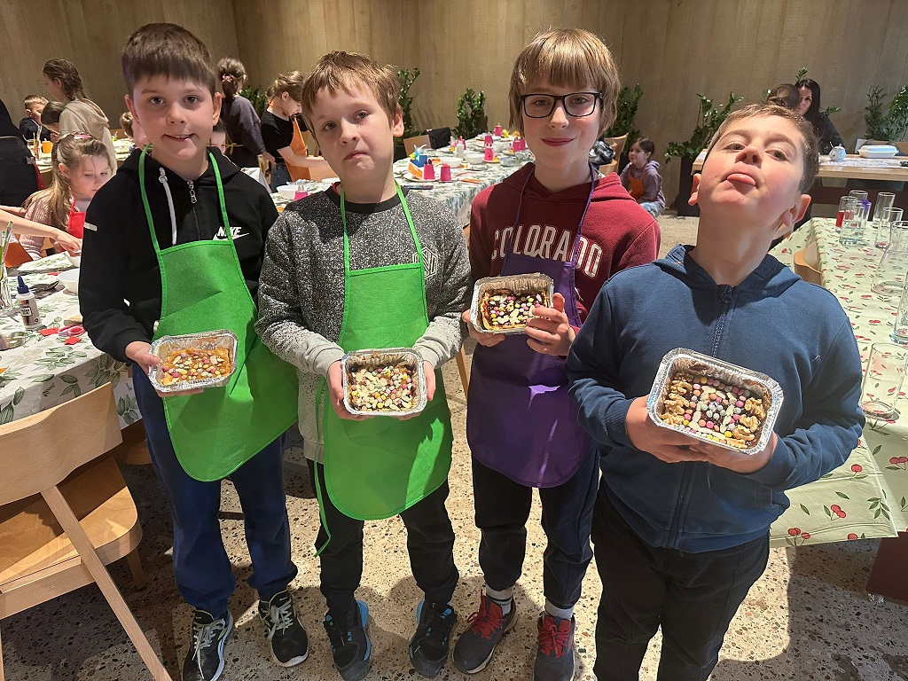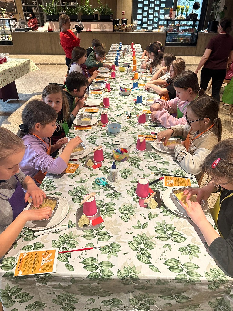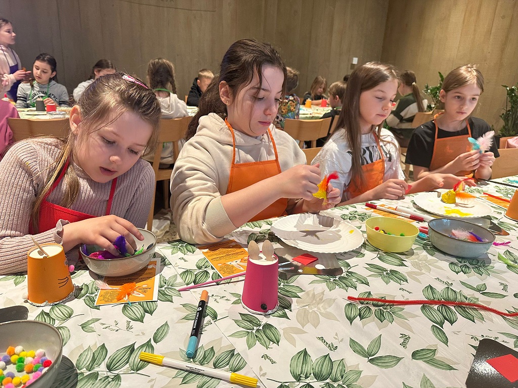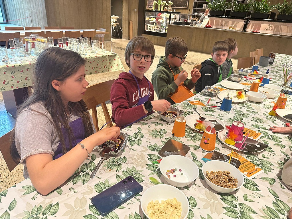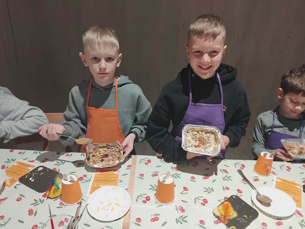 Nasi trzecioklasiści odwiedzili dziś restaurację Adelcia w Sulejówku, by wziąć udział w warsztatach „Kurki, żurki i mazurki”. Dzieci zamieniły się w małych cukierników i własnoręcznie dekorowały wielkanocne mazurki. Powstały prawdziwe, jadalne dzieła sztuki! Oprócz słodkości, uczniowie dowiedzieli się też, jak przygotować tradycyjny zakwas na żurek i poznali świąteczne zwyczaje oraz wykazali się kreatywnością podczas tematycznych prac plastycznych. To był dzień pełen smaków, zapachów i radosnej integracji. Po skończonej pracy każdy uczestnik mógł zabrać swoje dzieło do domu, by podzielić się nim z najbliższymi podczas nadchodzących świąt. Wizyta w Sulejówku okazała się niezwykłą przygodą, która wprowadziła wszystkich w radosny, świąteczny nastrój. Serdecznie dziękujemy „załodze” restauracji Adelcia za gościnność i dawkę cennej wiedzy!