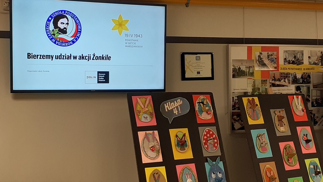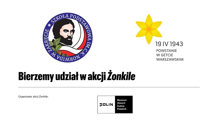 W dniach 16 i 17 kwietnia Nasza Szkoła aktywnie włączyła się w akcję społeczno - edukacyjną Żonkile, organizowaną przez Muzeum Historii Żydów Polskich POLIN, pod hasłem „Łączy nas pamięć”. Celem inicjatywy było upamiętnienie rocznicy wybuchu powstania w getcie warszawskim oraz przybliżenie najmłodszym historii w sposób dostosowany do ich wieku.