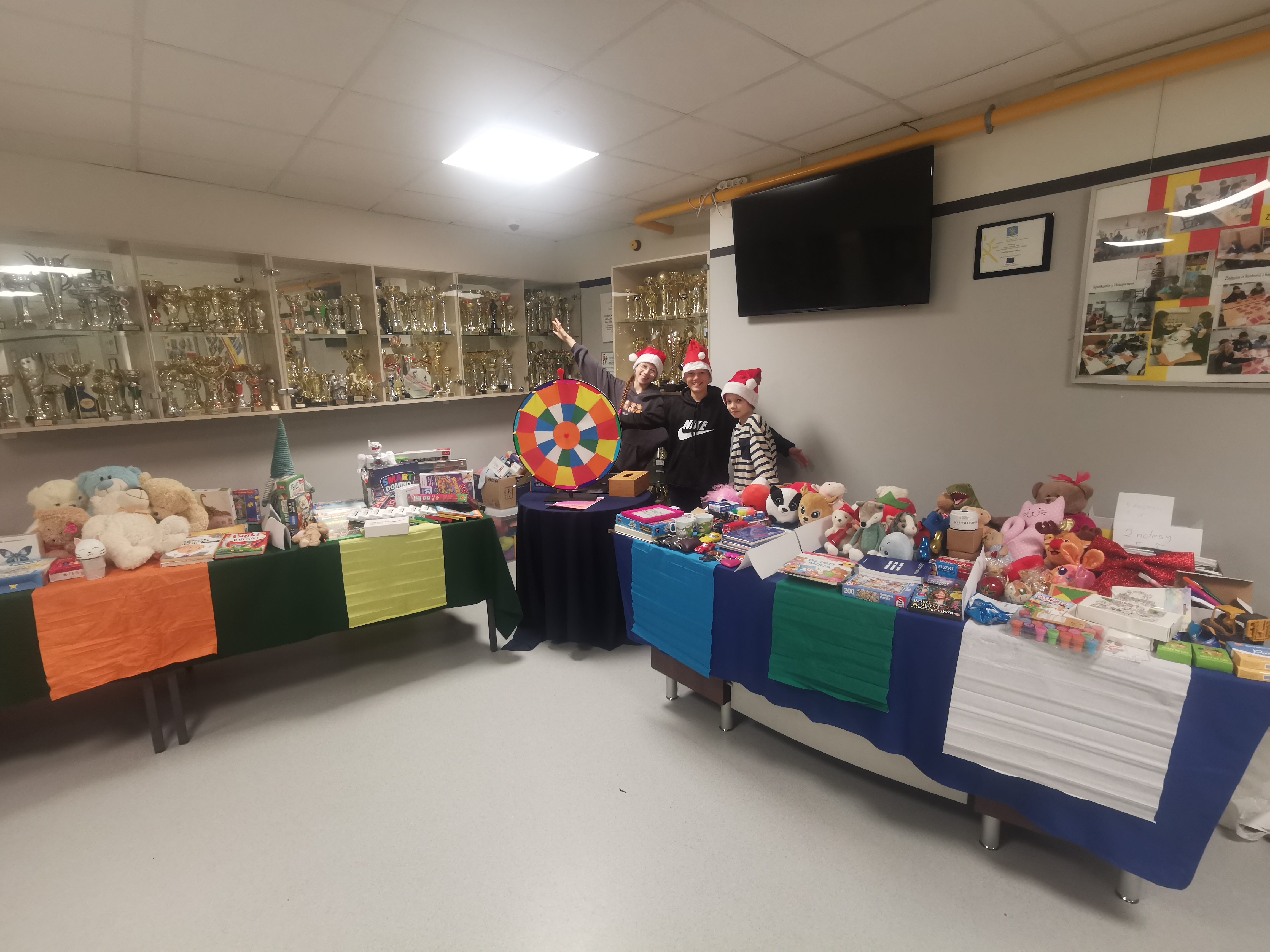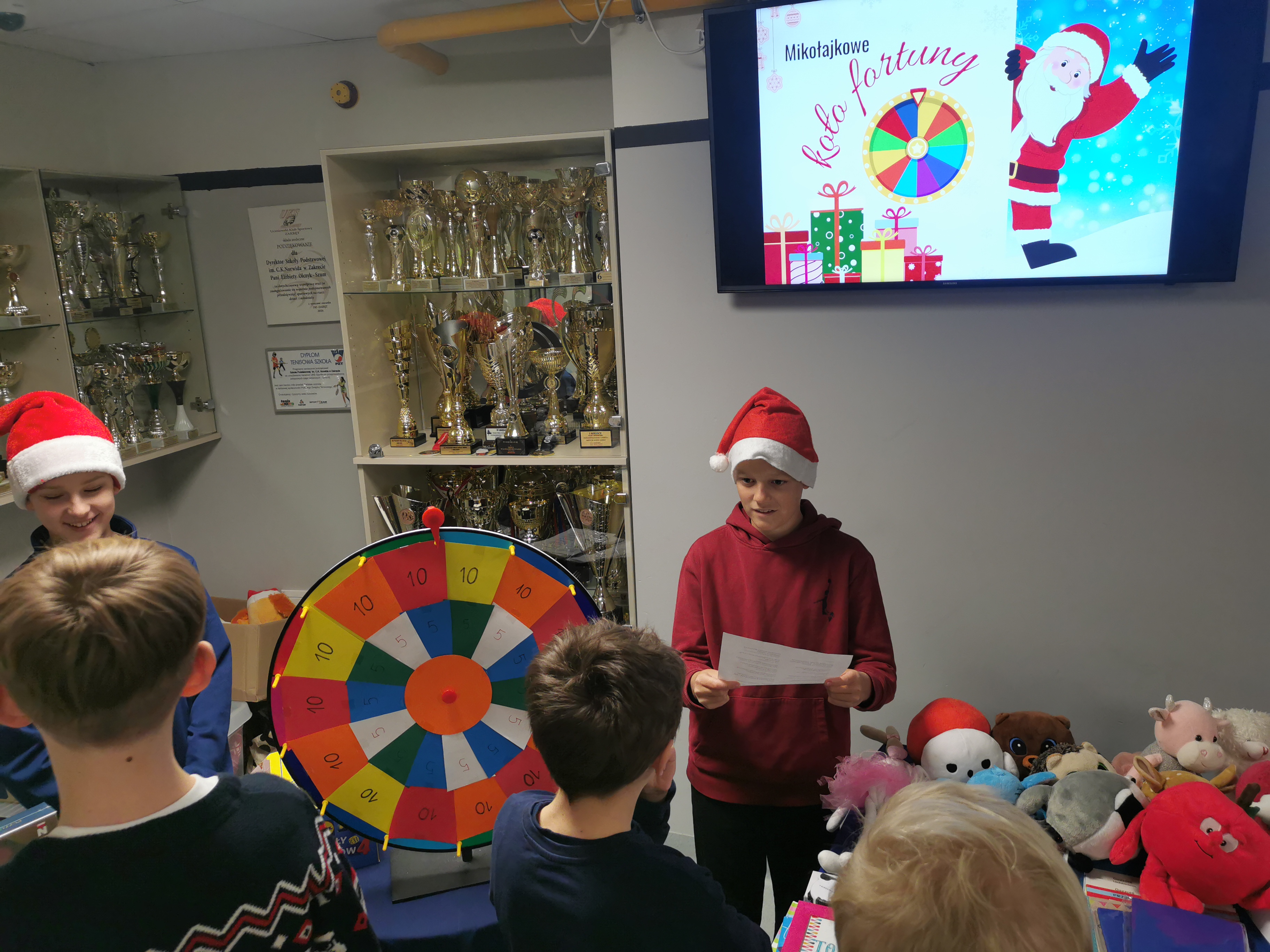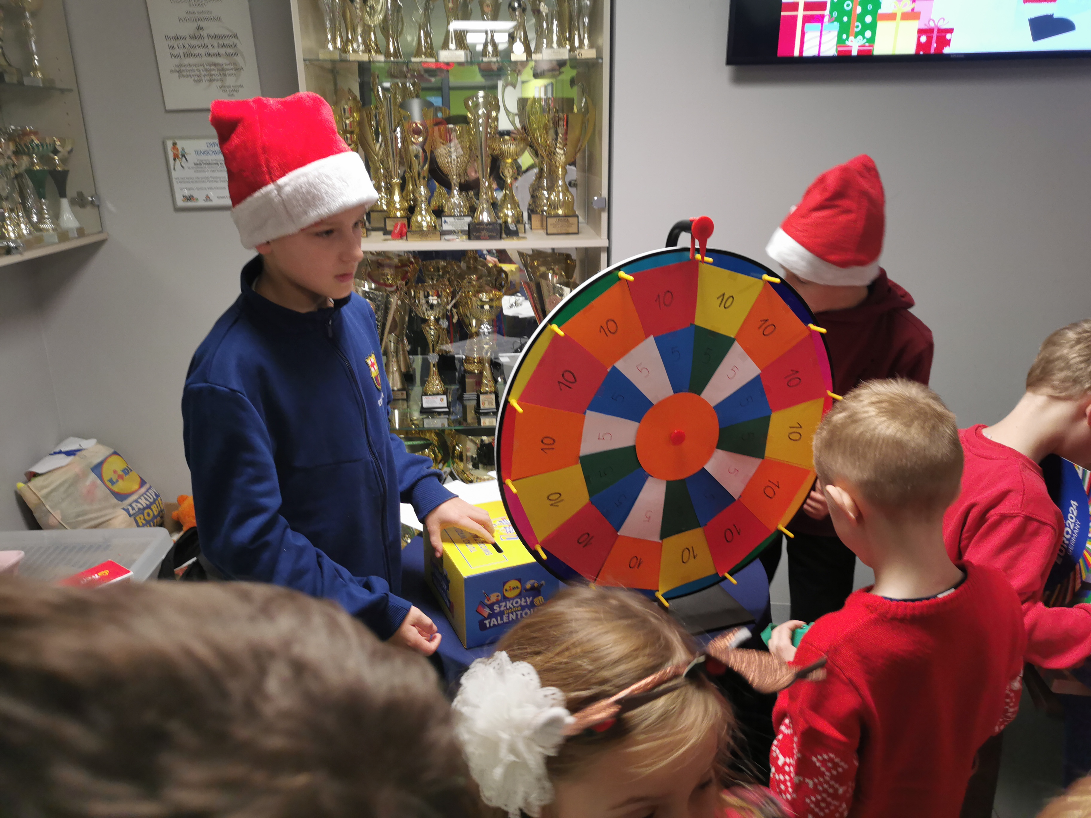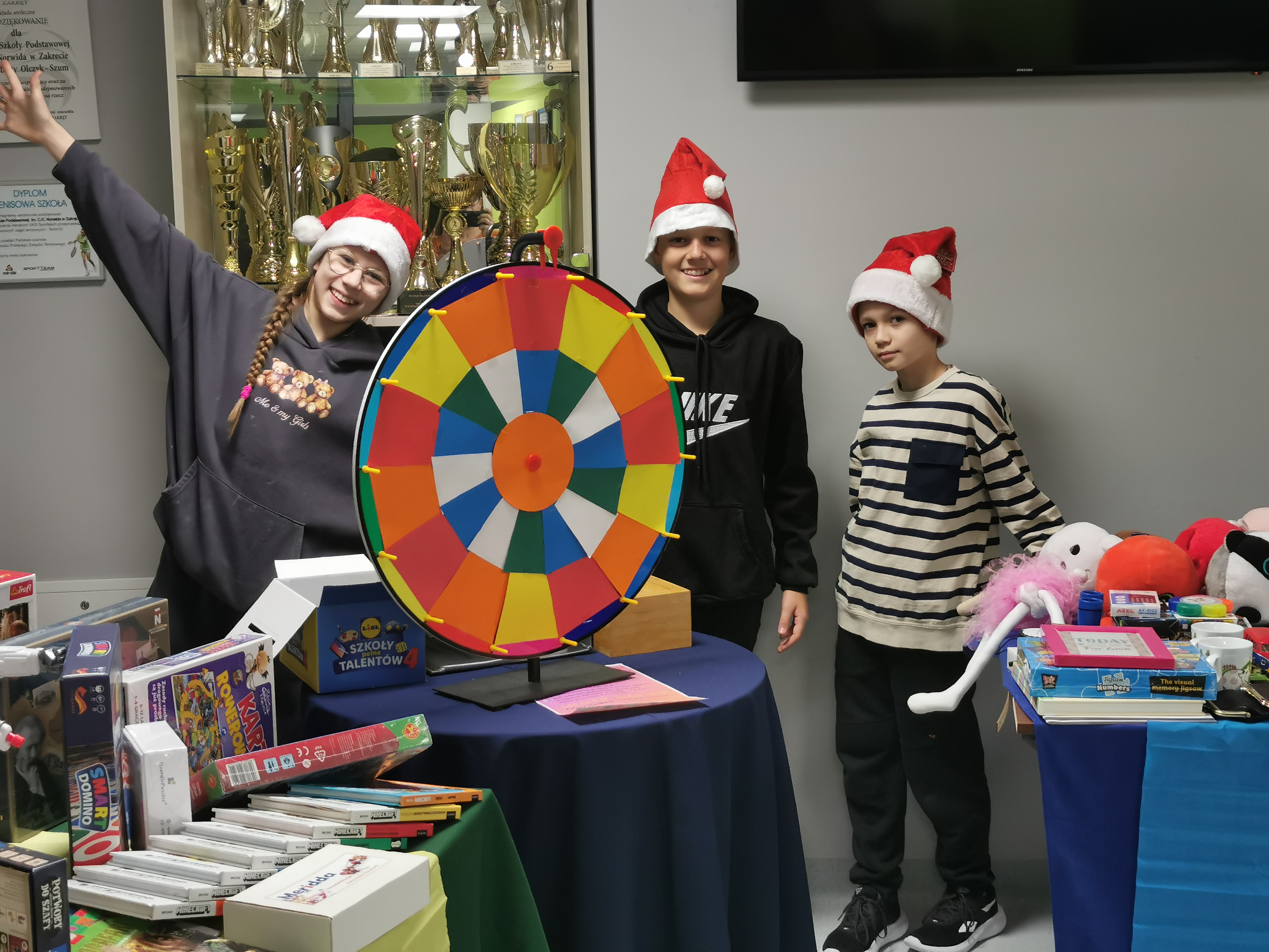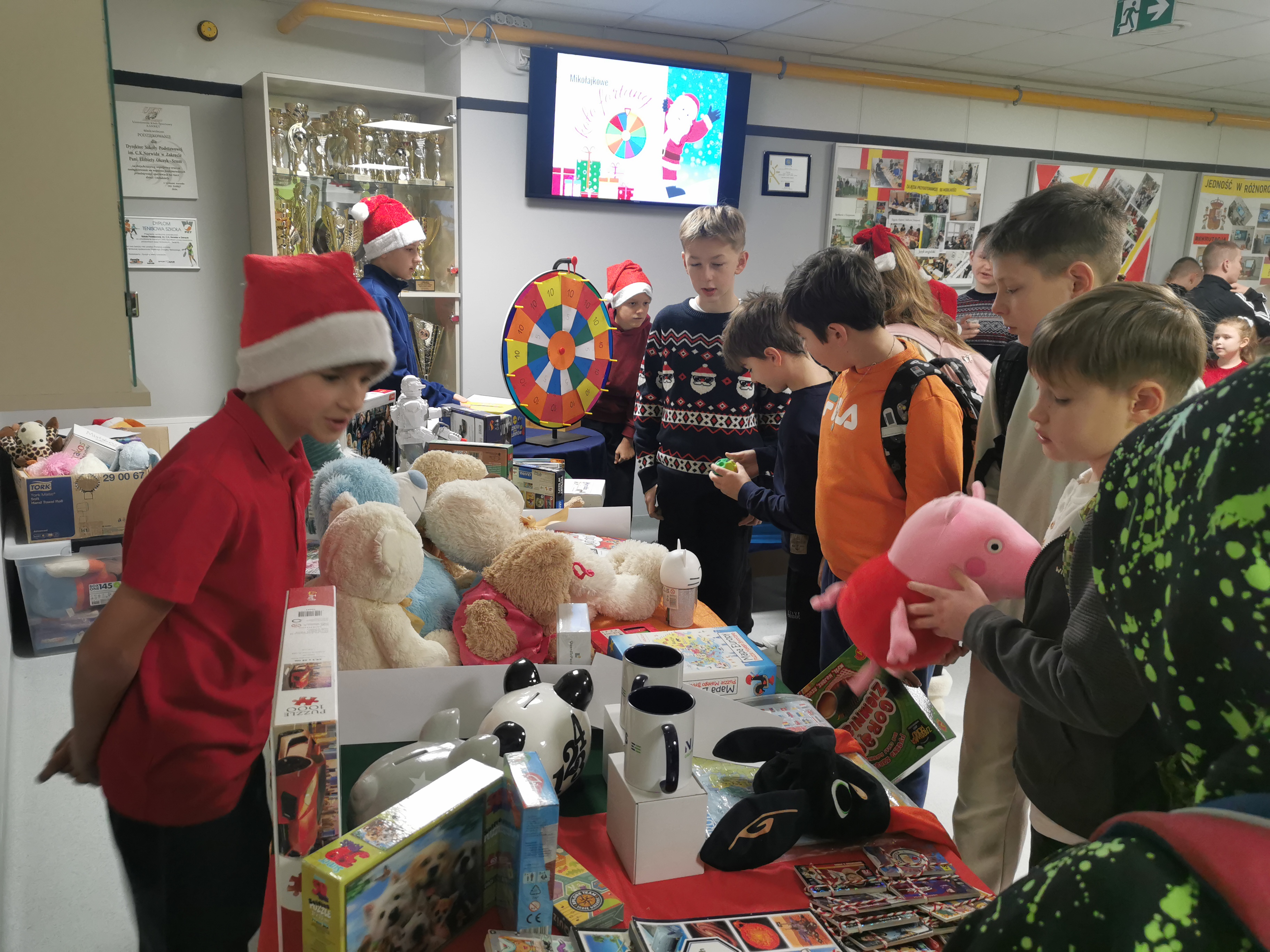 5 grudnia nasza szkoła zamieniła się w prawdziwą krainę świątecznej zabawy! Tego dnia ruszyło mikołajkowe Koło Fortuny, które przyciągnęło tłumy uczniów pełnych ciekawości i dobrego humoru. Za 5 lub 10 zł każdy mógł wylosować swój los, odpowiedzieć na świąteczne pytanie i z wielkimi emocjami zakręcić kołem, licząc na fantastyczną nagrodę.