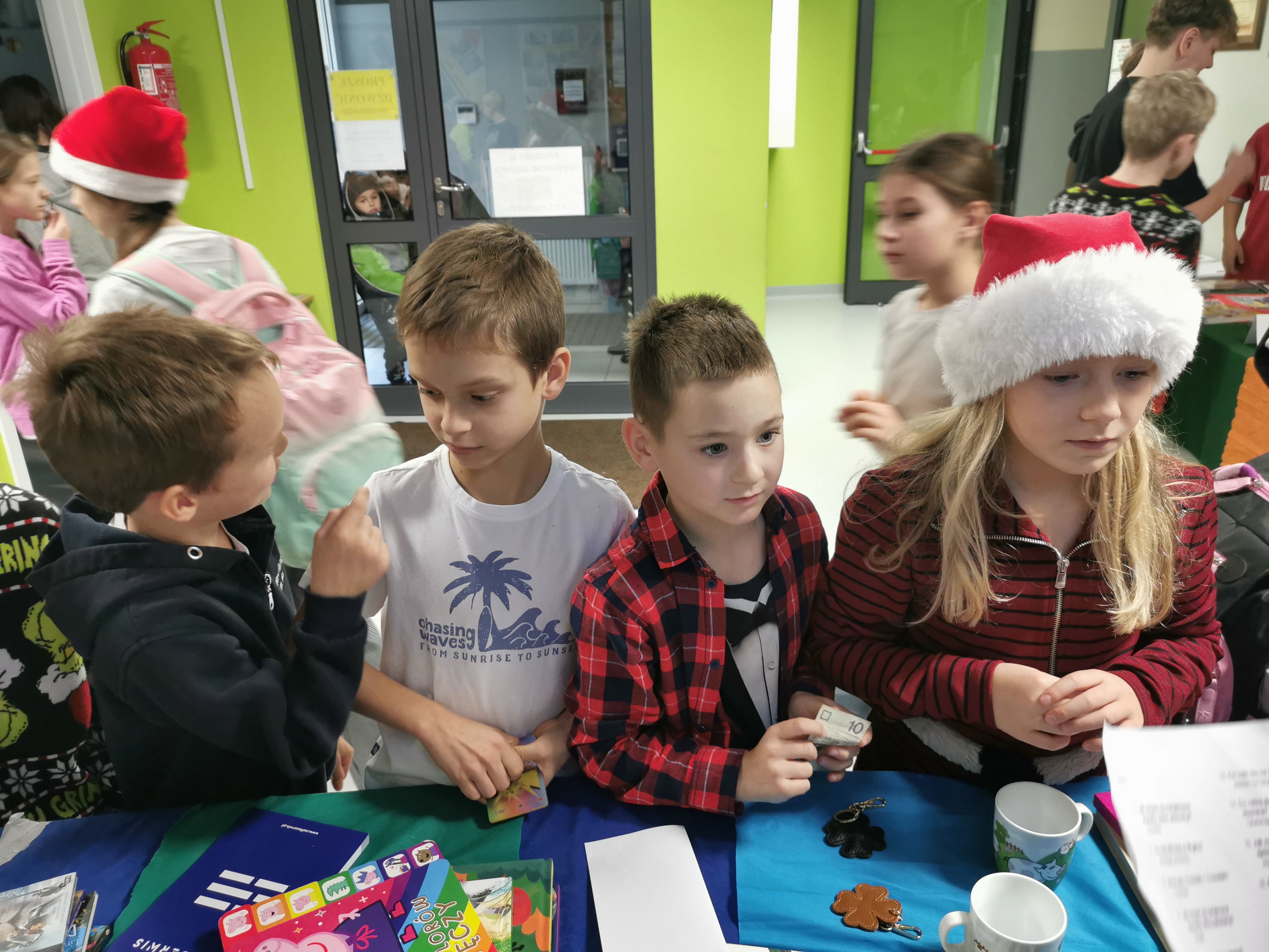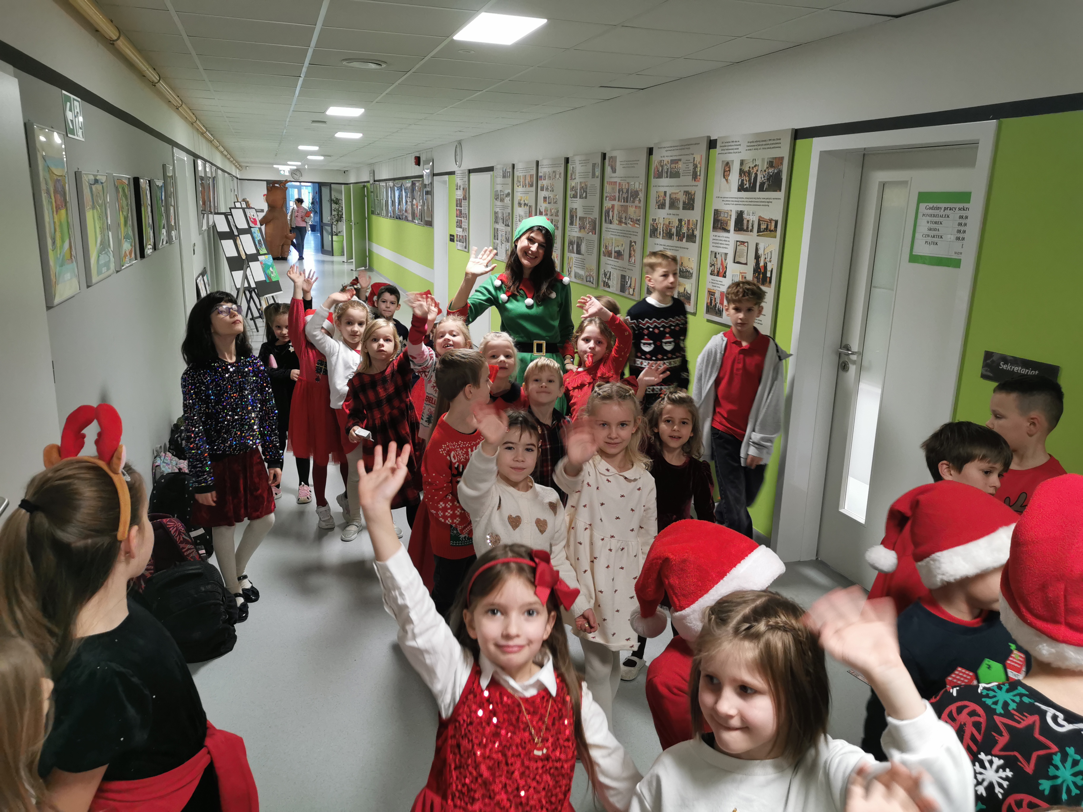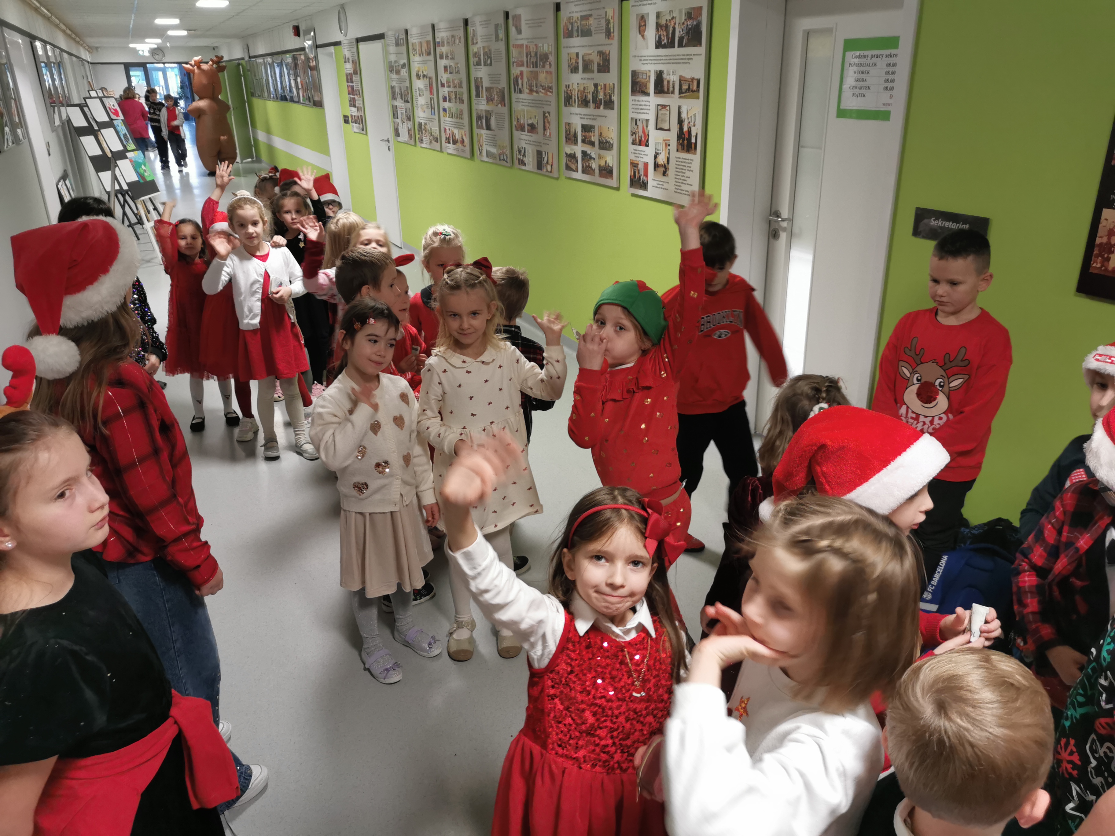 Wielkie, gorące podziękowania dla wszystkich „Mikołajów” pomagających przy wydarzeniu oraz dla głównego pomysłodawcy i organizatora – Tadeusza Słyszko z klasy 6a, który rozkręcił całe to wesołe zamieszanie!