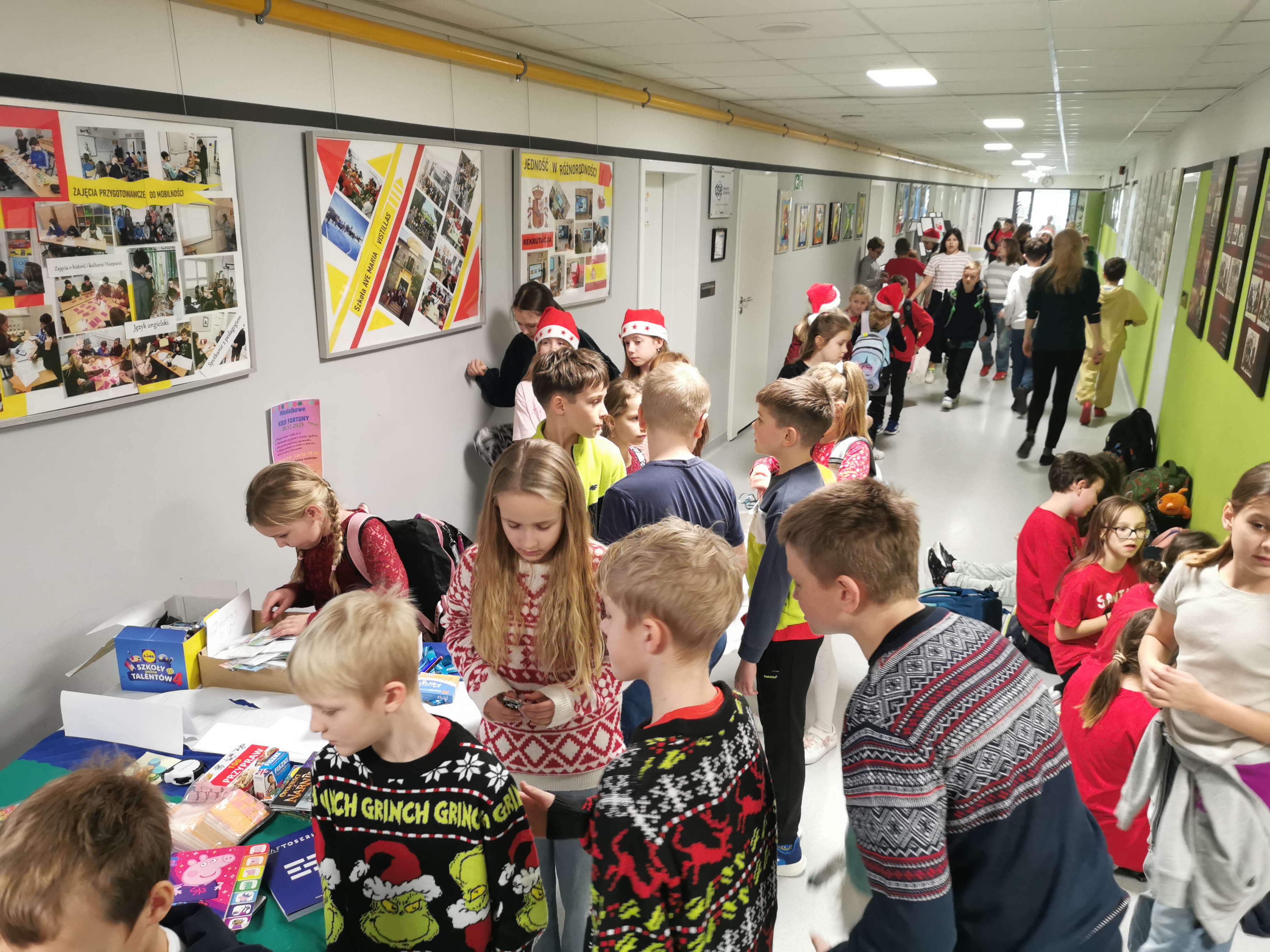 A działo się naprawdę dużo! Śmiech niósł się po całej szkole, kolejka do zabawy nie miała końca, a radość i ekscytacja udzielały się wszystkim dookoła. Atmosfera była tak świąteczna i mikołajkowa, że można było poczuć magię zbliżających się świąt na każdym kroku.