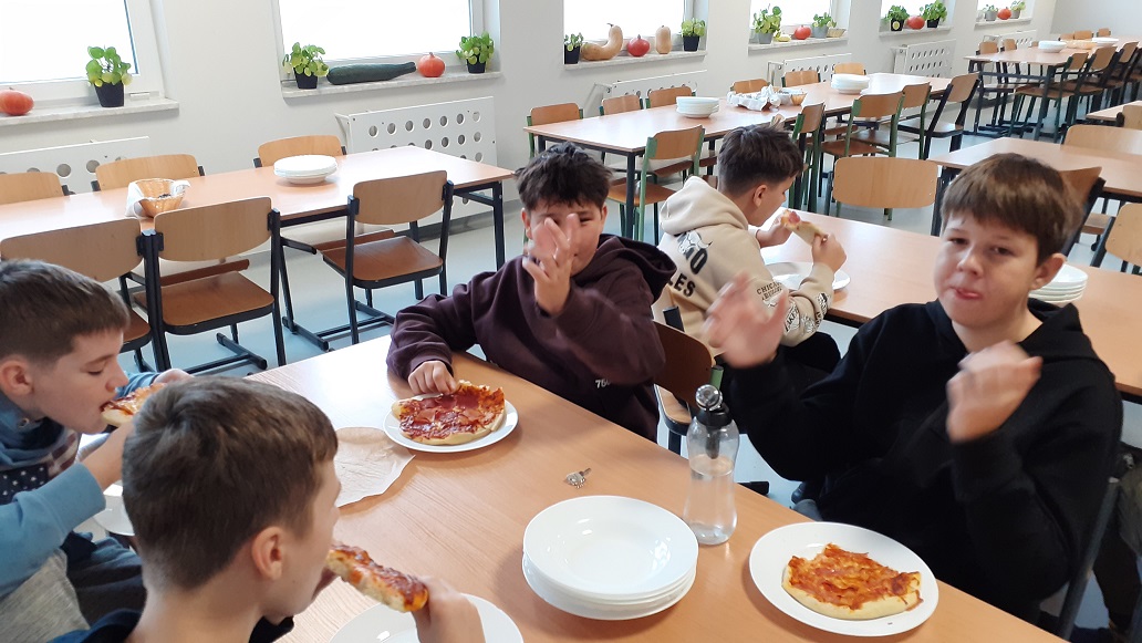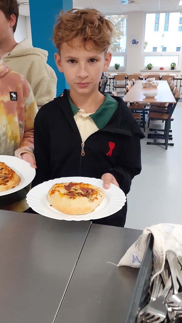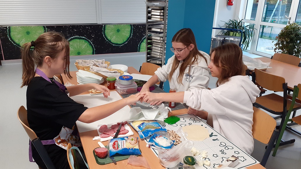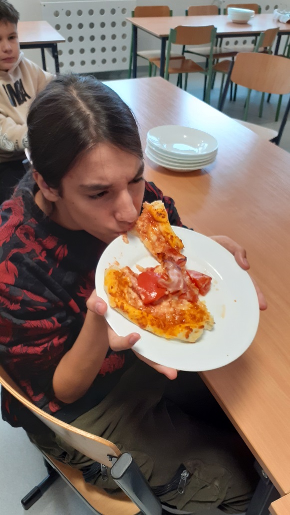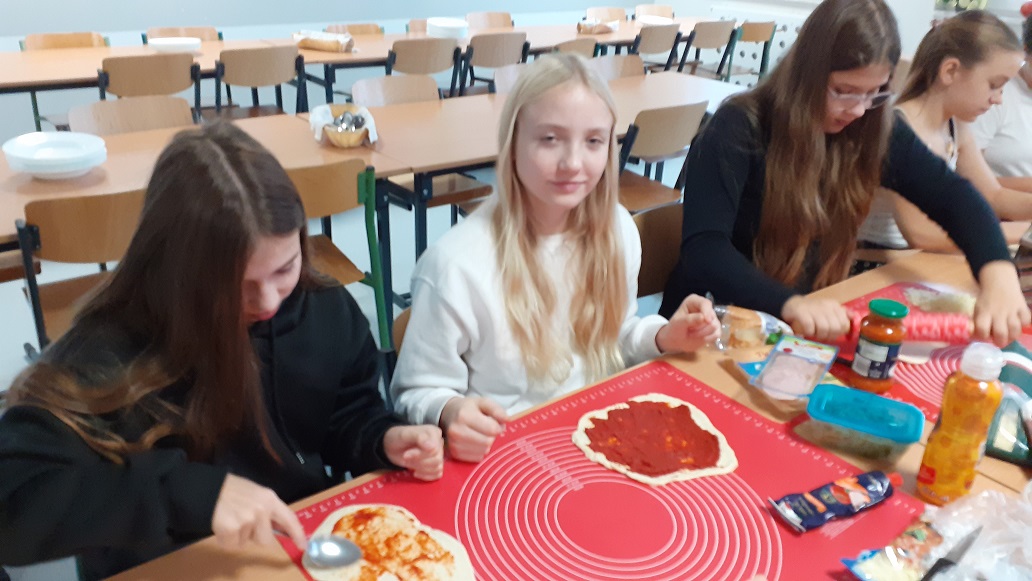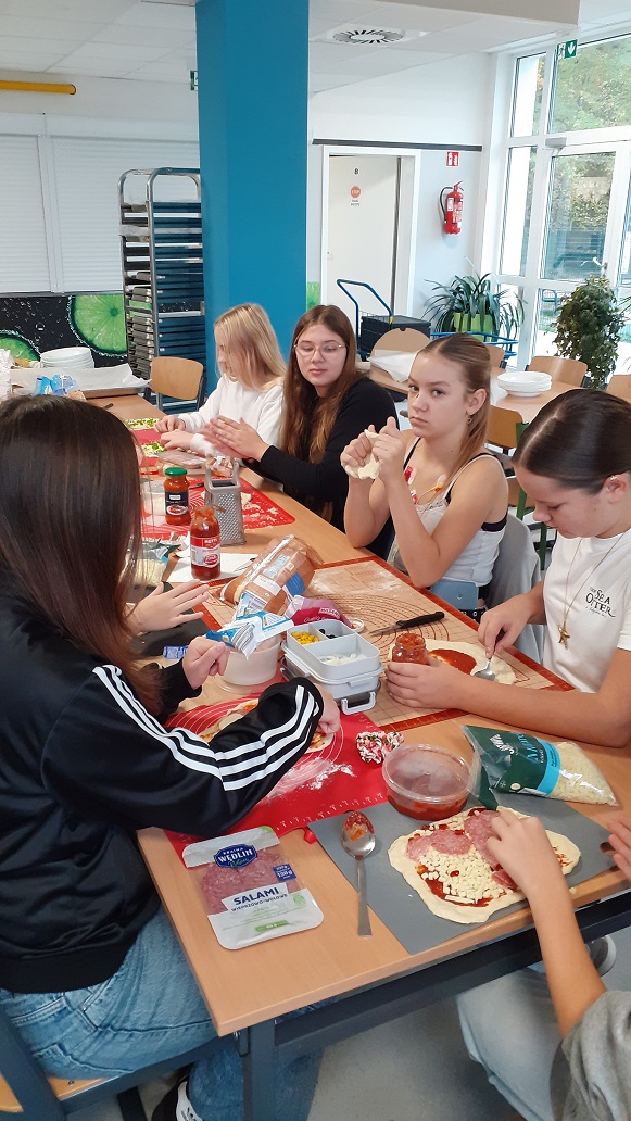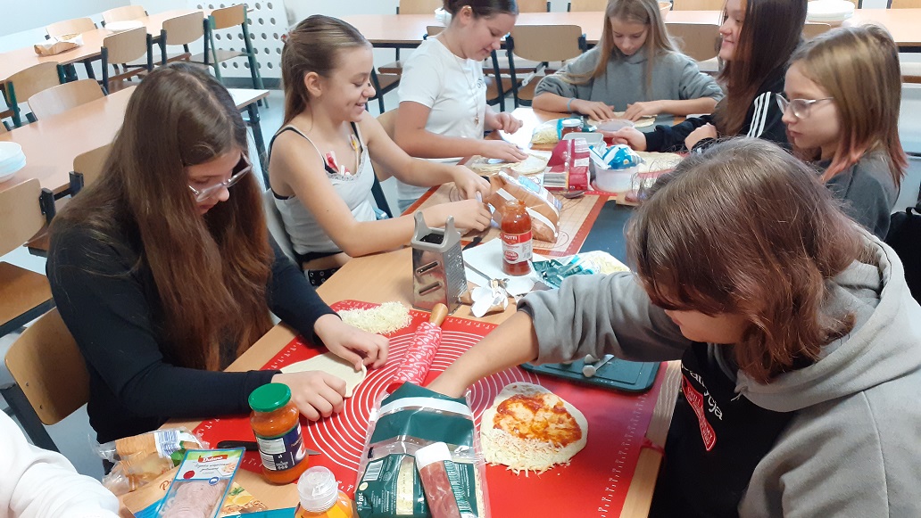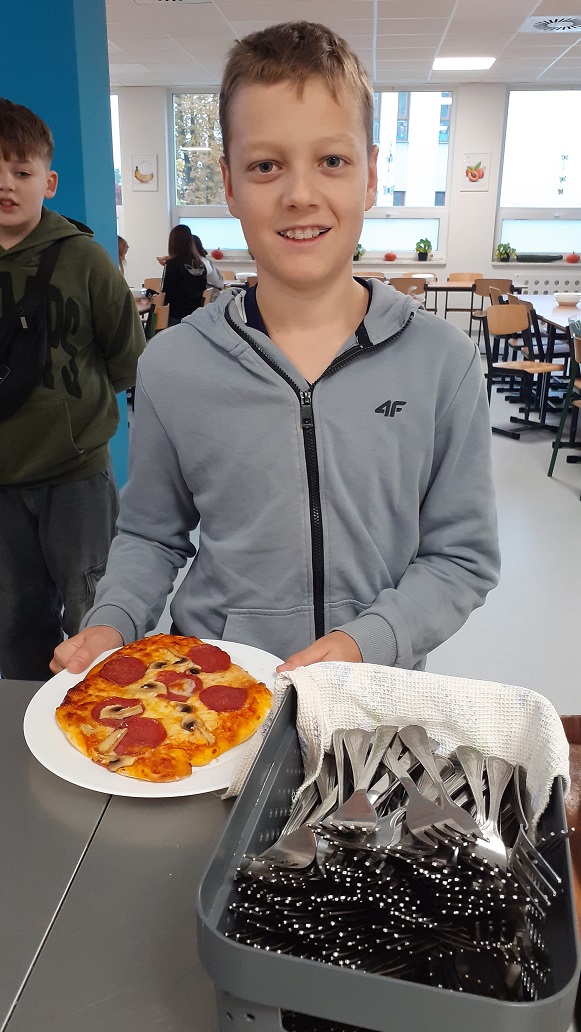 Na ostatnich zajęciach techniki klasy 6 wzięły udział w warsztatach kulinarnych poświęconych sztuce wypieku pizzy. Uczniowie samodzielnie przygotowywali swoje kompozycje smakowe, przynosząc z domu ulubione składniki – sery, szynki, warzywa i sosy. O ciasto zatroszczyli się nasi szkolni kucharze p. Natalia i p. Sebastian, dzięki czemu uczniowie mogli od razu przystąpić do formowania placków i układania dodatków.