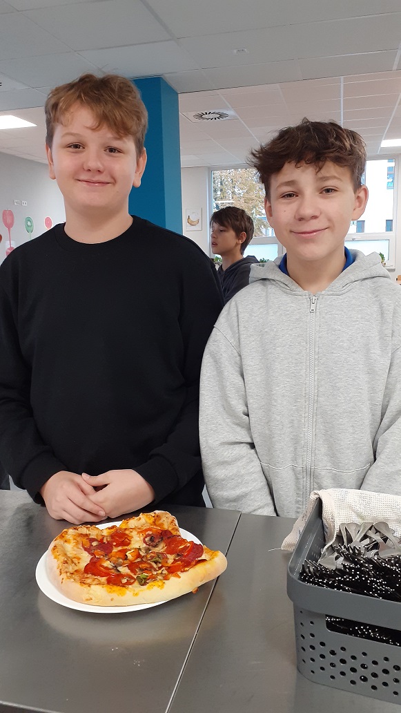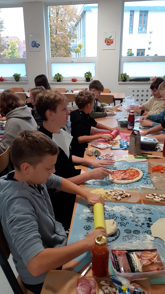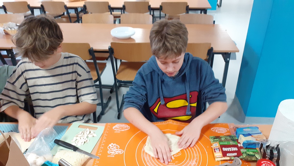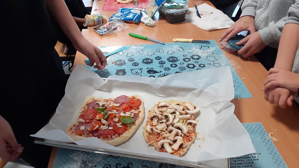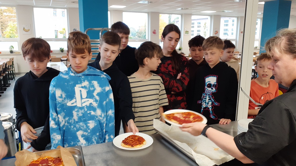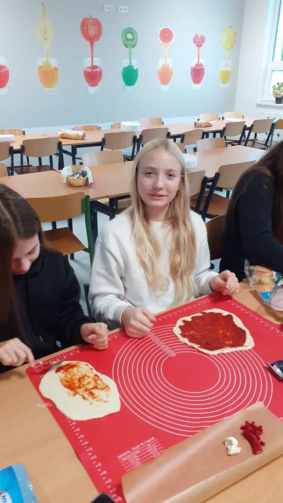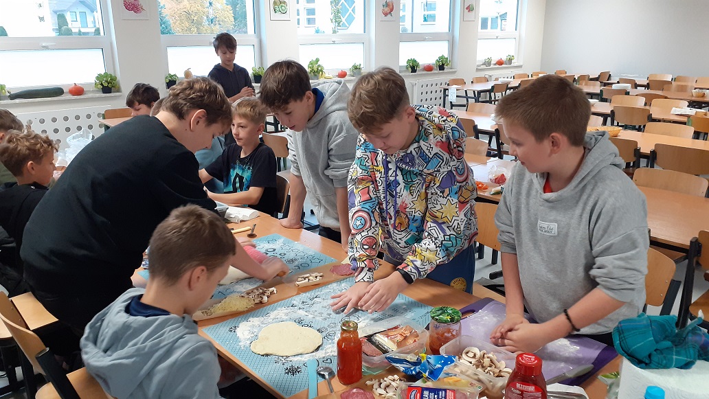 Na ostatnich zajęciach techniki klasy 6 wzięły udział w warsztatach kulinarnych poświęconych sztuce wypieku pizzy. Uczniowie samodzielnie przygotowywali swoje kompozycje smakowe, przynosząc z domu ulubione składniki – sery, szynki, warzywa i sosy. O ciasto zatroszczyli się nasi szkolni kucharze p. Natalia i p. Sebastian, dzięki czemu uczniowie mogli od razu przystąpić do formowania placków i układania dodatków.