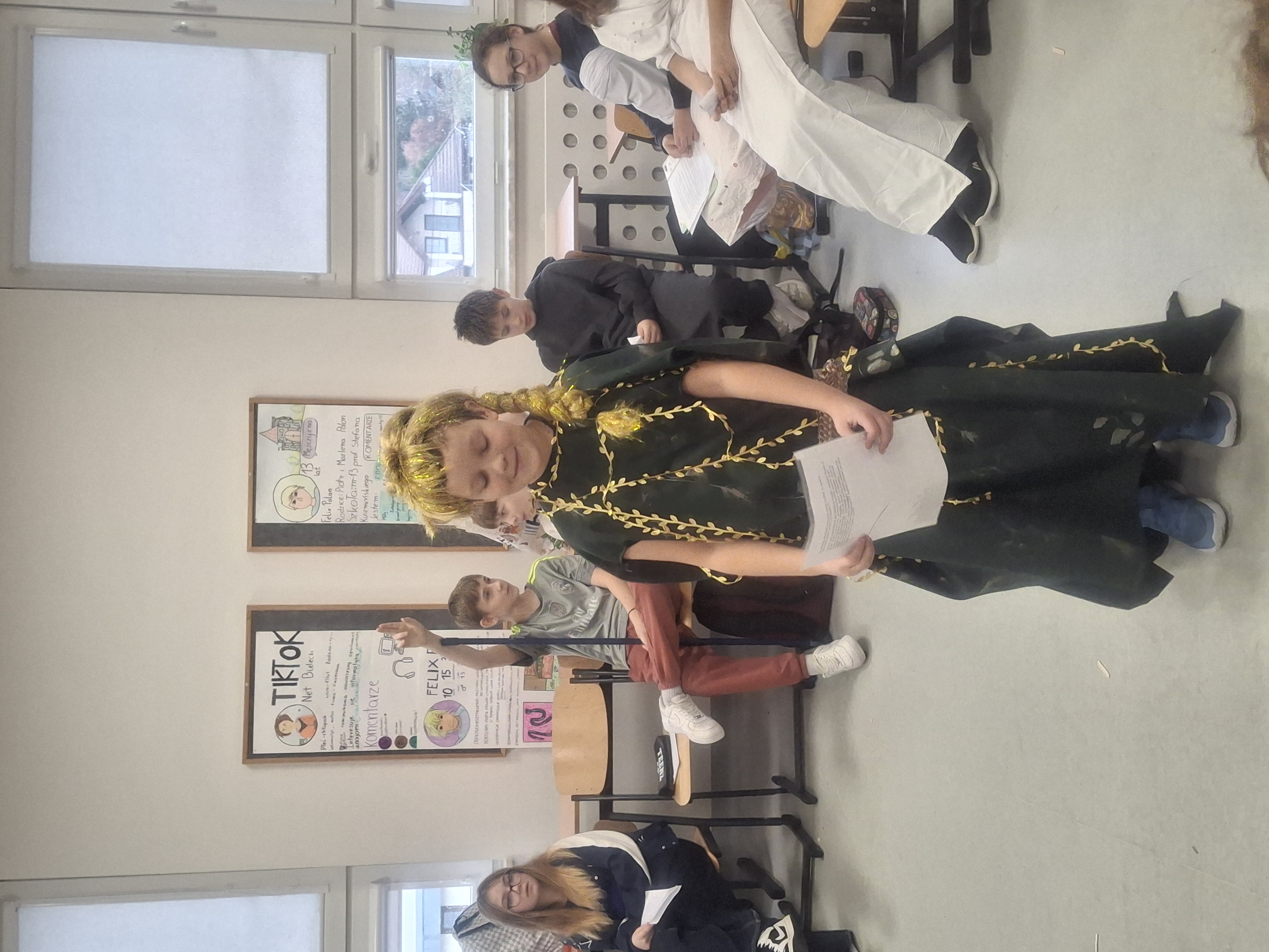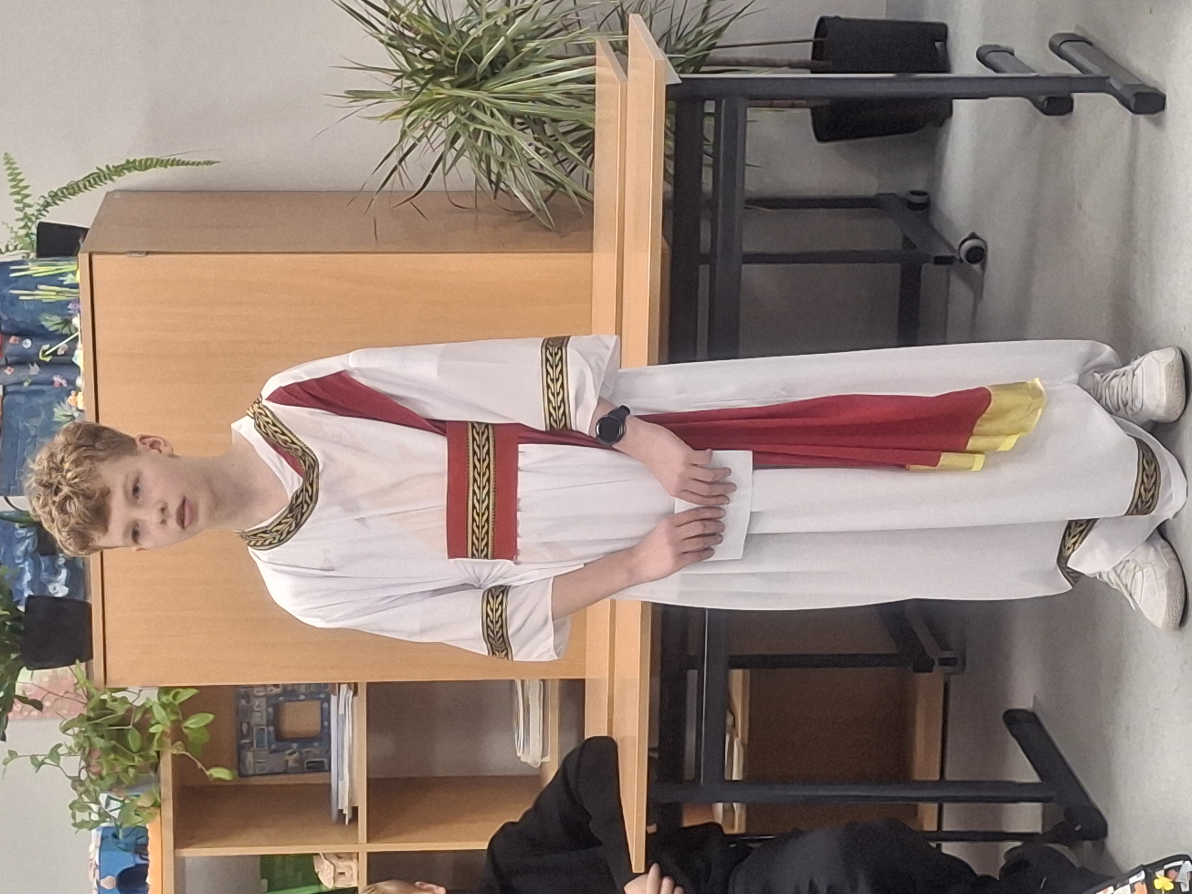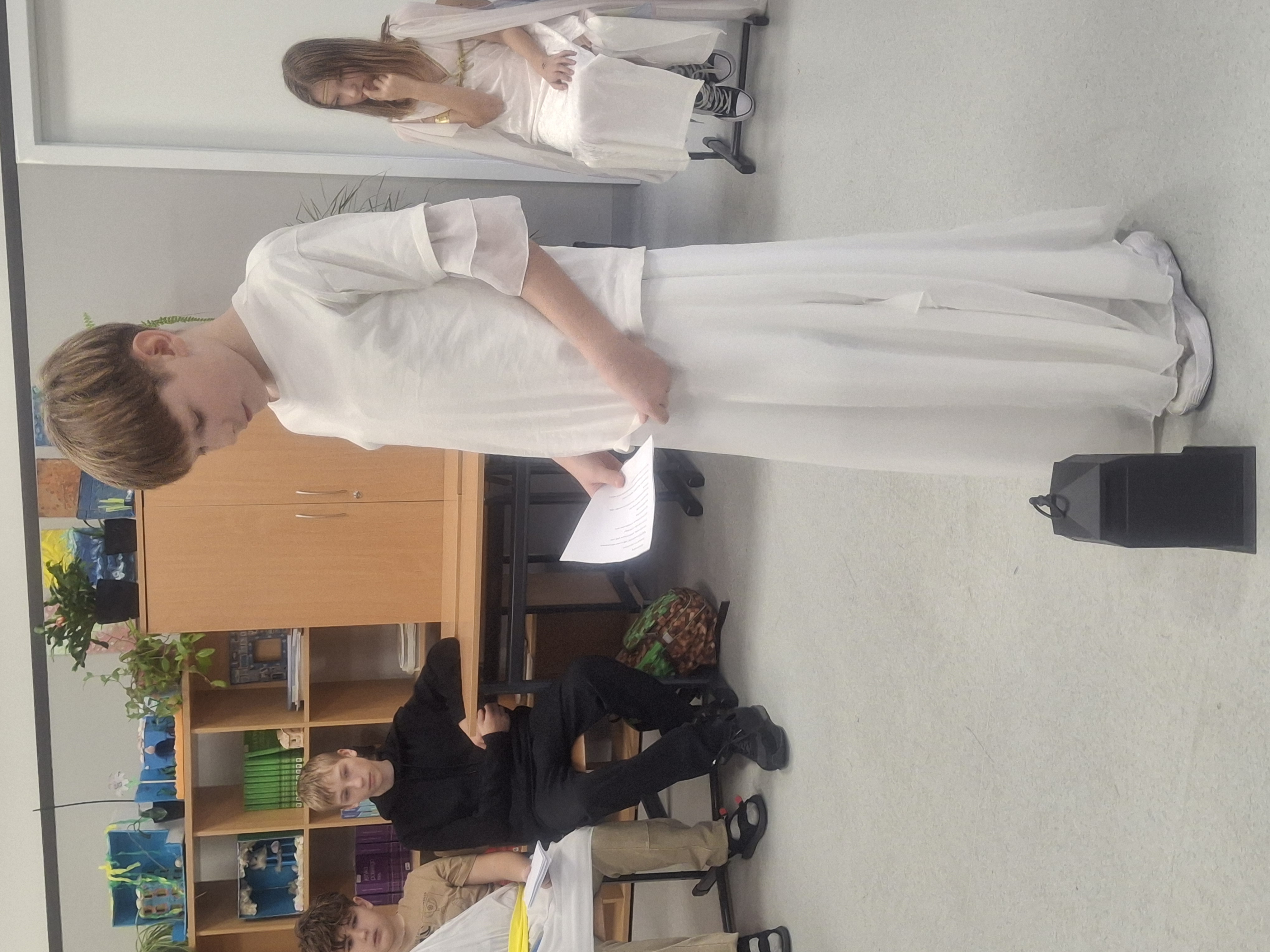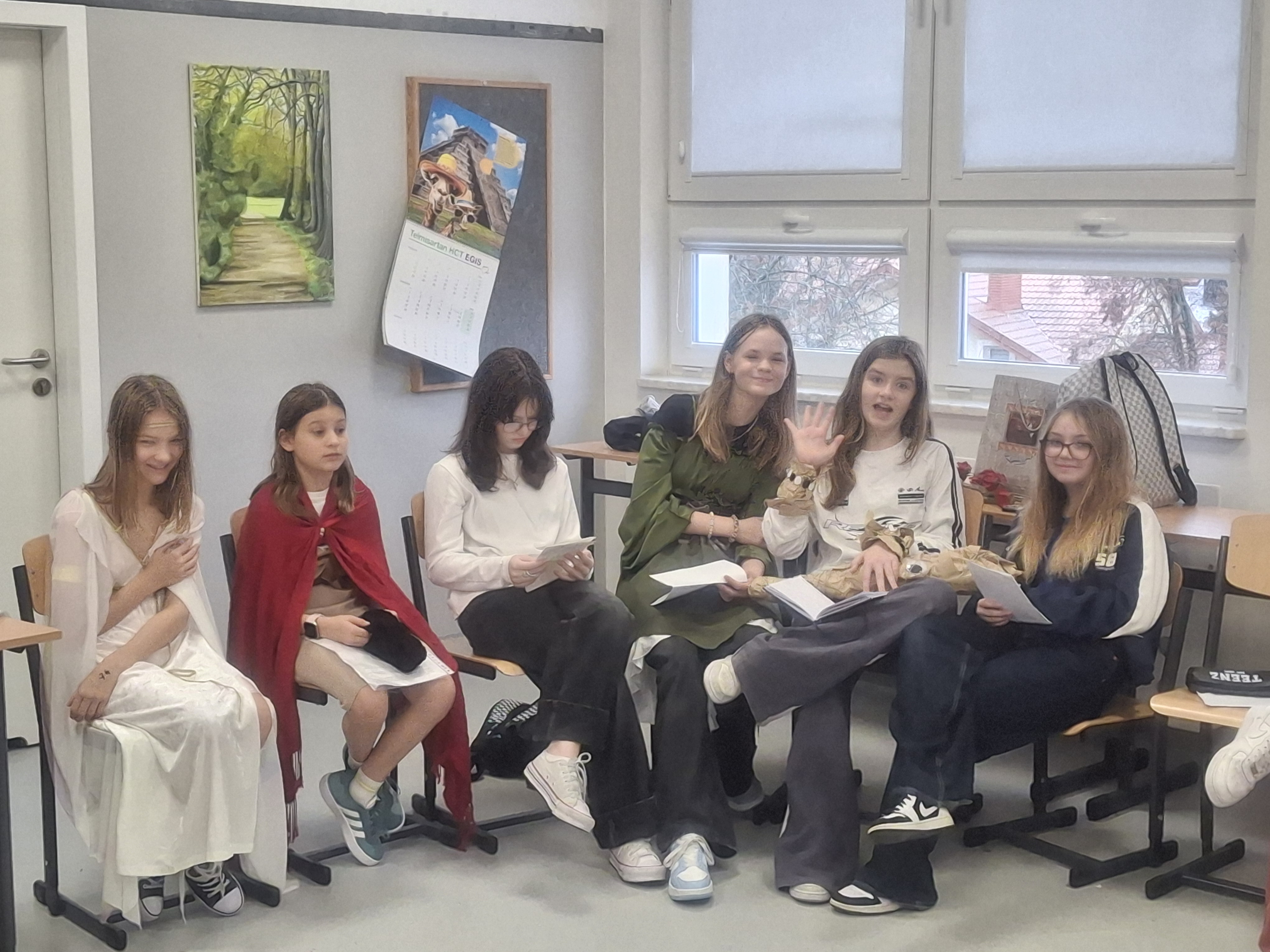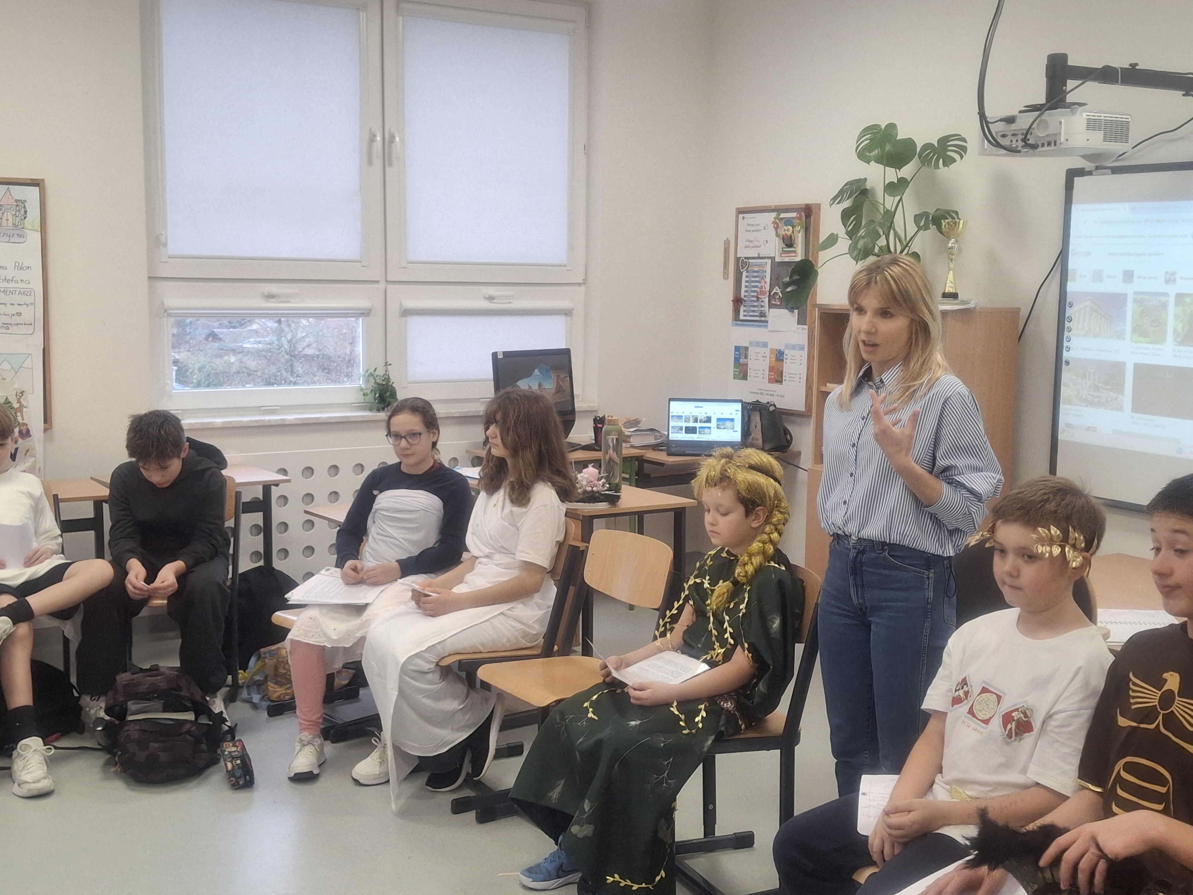 Prezentacje łączyły wiedzę merytoryczną z kreatywnością – uczniowie przygotowali stroje, rekwizyty oraz krótkie wystąpienia, dzięki którym mogliśmy przenieść się do świata starożytnej Grecji. Wydarzenie było nie tylko okazją do nauki, ale także świetnej zabawy i rozwijania umiejętności wystąpień publicznych.