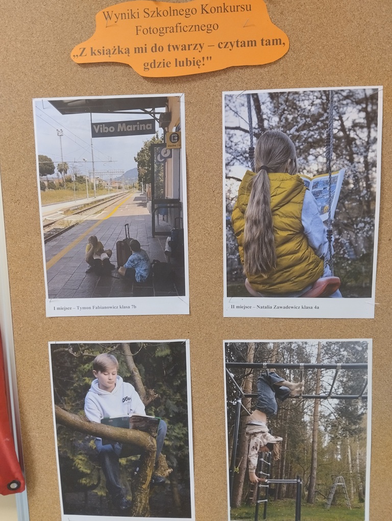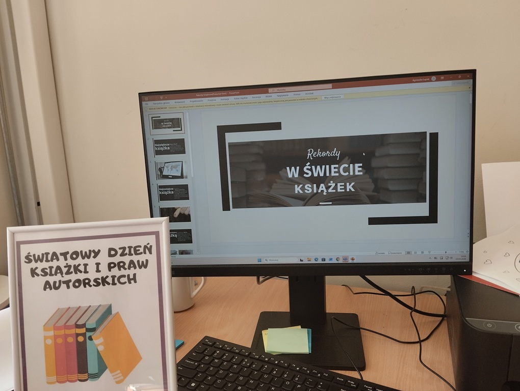 23 kwietnia w naszej bibliotece szkolnej obchodziliśmy Światowy Dzień Książki i Praw Autorskich. Tego dnia dzieci tworzyły własne książeczki – wymyślały historie, projektowały okładki i wykonywały ilustracje. Dzięki temu mogły poczuć się jak prawdziwi autorzy i lepiej zrozumieć, jak powstaje książka. Uczniowie obejrzeli również prezentację dotyczącą znaczenia tego święta oraz ciekawostek o książkach, w tym różnych rekordów związanych z czytelnictwem. Nie zabrakło także głośnego czytania fragmentów wybranych utworów, które sprawiło uczestnikom wiele radości. Dodatkowo został rozstrzygnięty szkolny konkurs fotograficzny „Z książką mi do twarzy – czytam tam, gdzie lubię”. Uczniowie zaprezentowali kreatywne zdjęcia ukazujące różne, często nietypowe miejsca do czytania. Najciekawsze prace zostaną nagrodzone. Obchody w szkolnej bibliotece przebiegły w przyjaznej atmosferze i zachęciły uczniów do częstszego sięgania po książki.