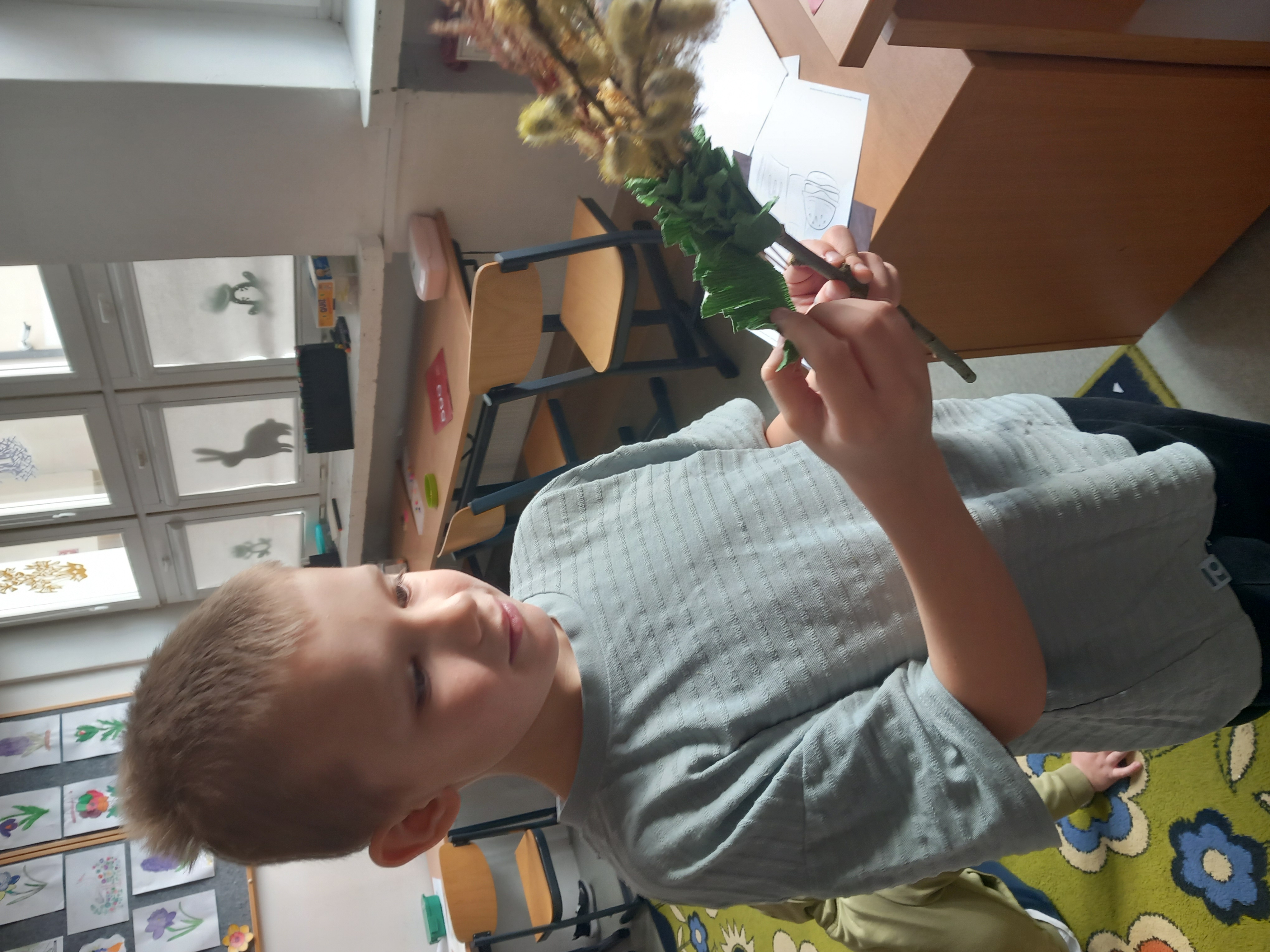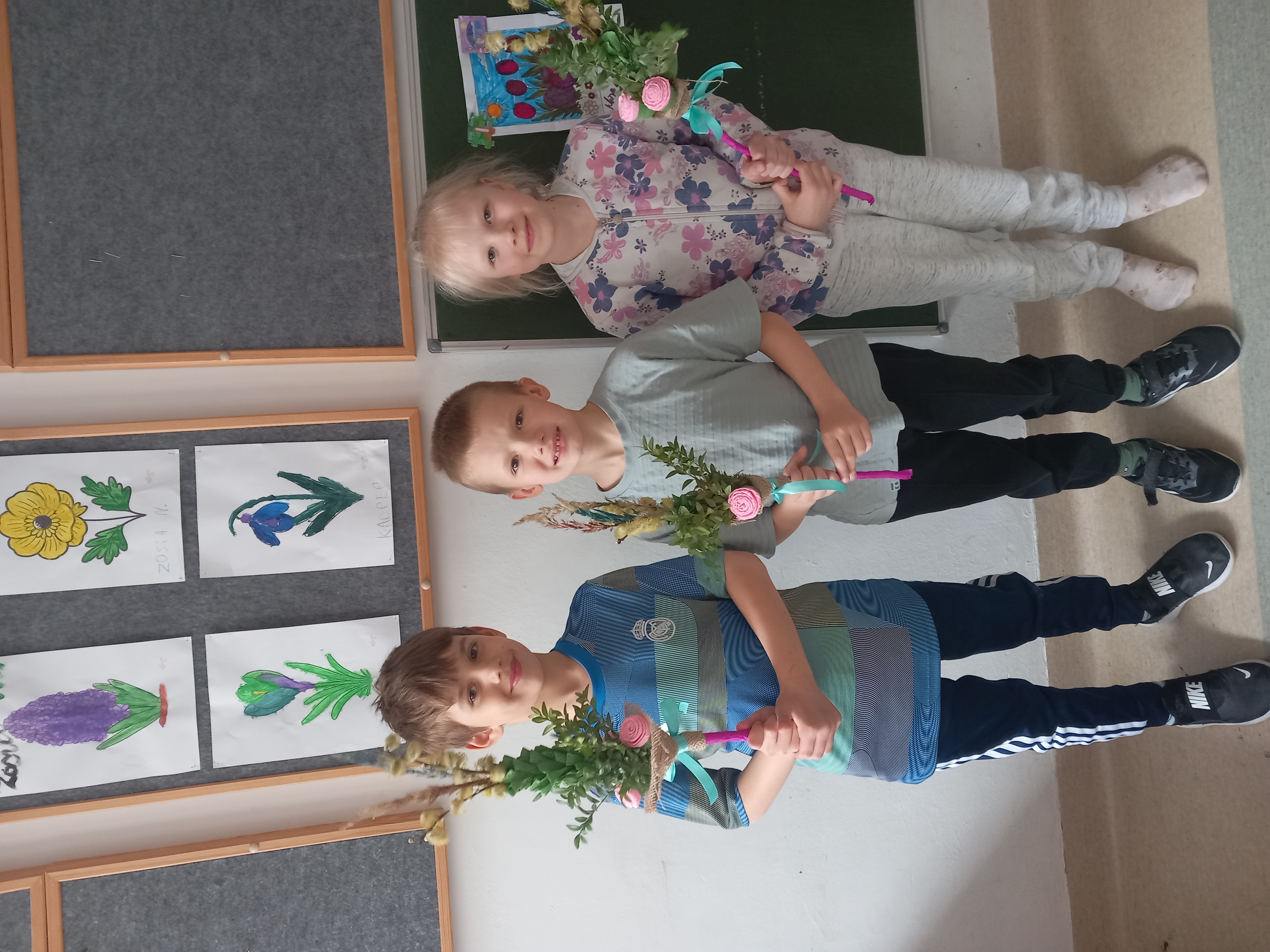 W przeddzień Niedzieli Palmowej w świetlicy szkolnej odbył się wyjątkowy warsztat tworzenia palm wielkanocnych. Uczniowie z dużym zaangażowaniem wykonywali kolorowe palmy z wykorzystaniem bukszpanu, tui, bibuły oraz bazi. Zajęcia były doskonałą okazją do poznania tradycji wielkanocnych oraz rozwijania zdolności manualnych. Powstałe prace zachwycały pomysłowością i bogactwem kolorów.