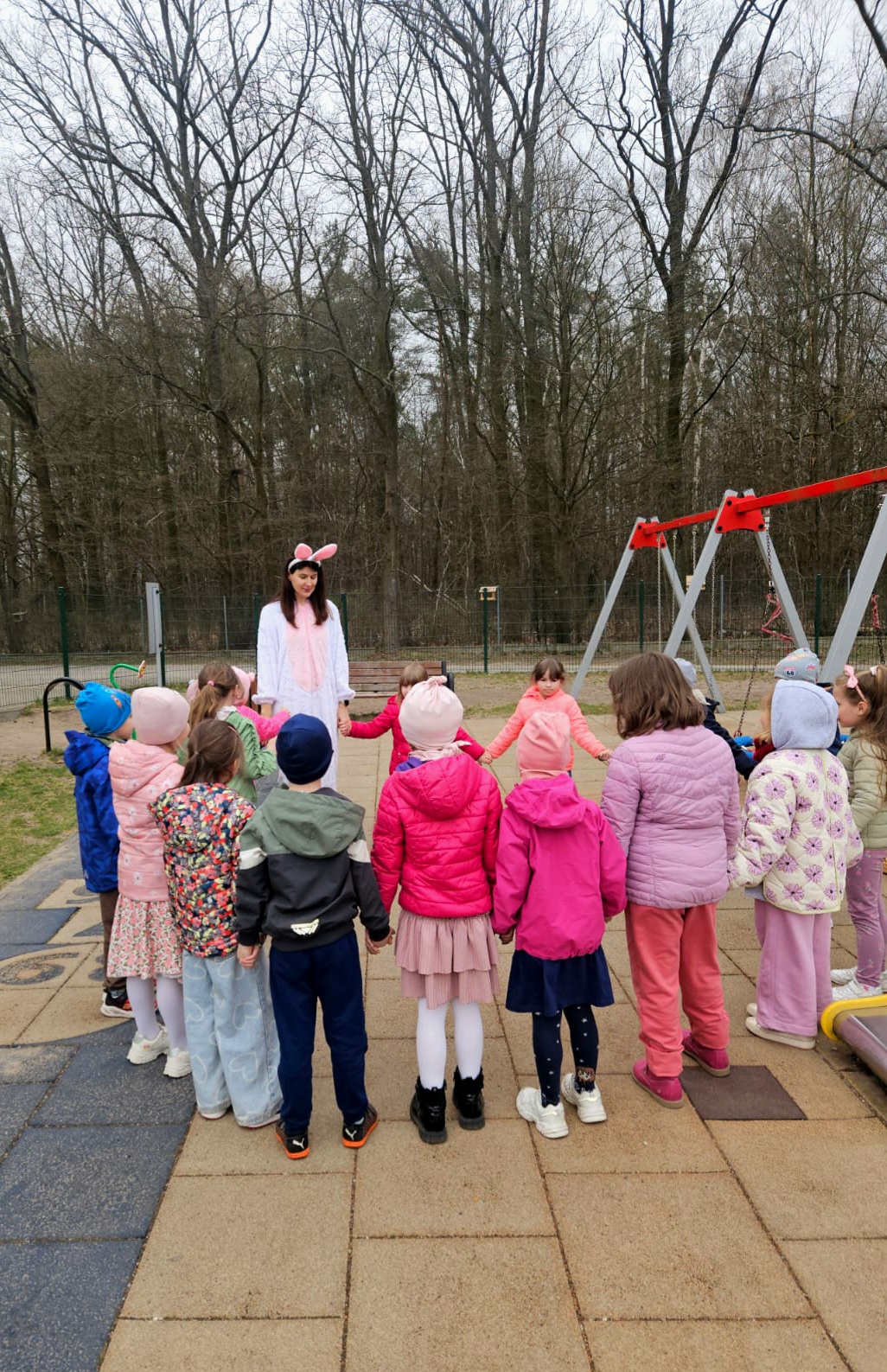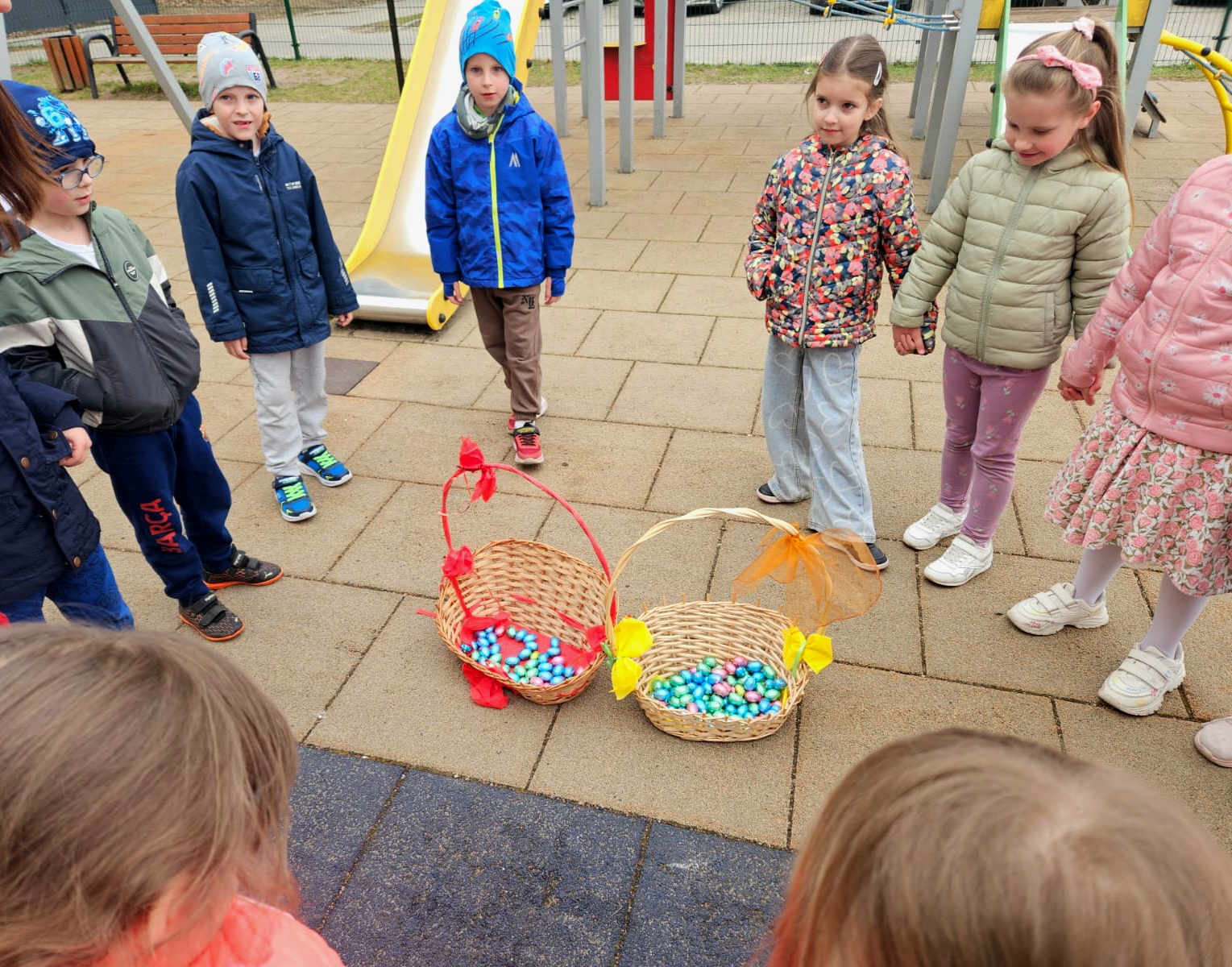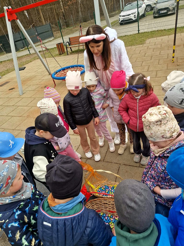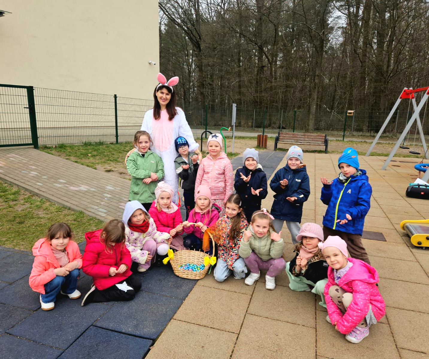 Nasze zerówki odwiedził wyjątkowy gość – Wielkanocny Króliczek! Przygotował dla dzieci mnóstwo radosnych zabaw oraz ciekawych zadań do wykonania. Najważniejszą misją było jednak odnalezienie zagubionych jajeczek, które króliczek ukrył w różnych zakątkach. Dzieci z ogromnym zaangażowaniem i uśmiechem na twarzach podjęły wyzwanie, wykazując się sprytem, spostrzegawczością i świetną współpracą. Było wiele śmiechu, zabawy i oczywiście słodkości. To był bardzo udany i wesoły przedświąteczny dzień.