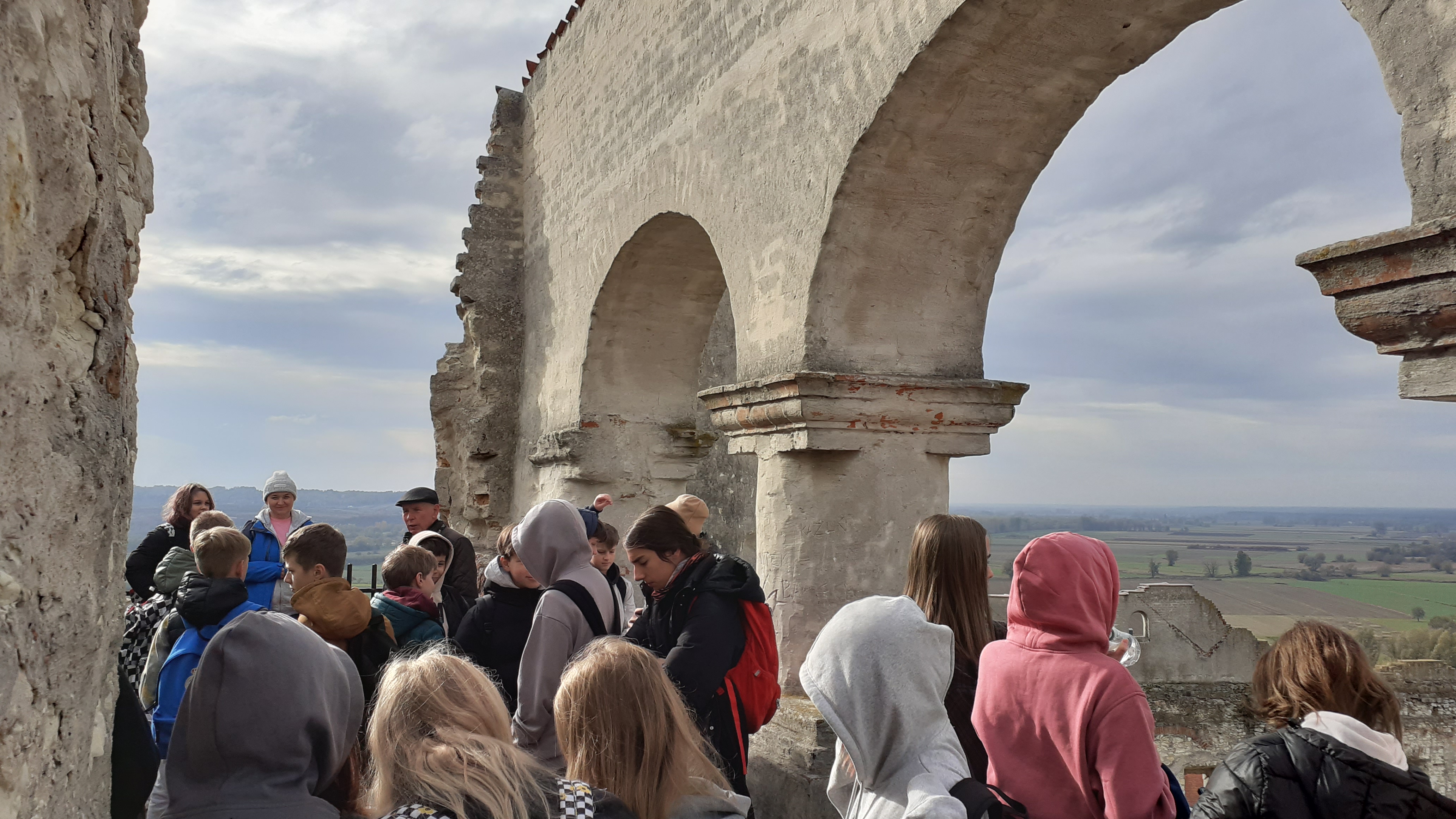 Pierwszym punktem programu było zwiedzanie ruin zamku w Janowcu. Uczniowie mieli okazję posłuchać o historii zamku janowieckiego, obejrzeli wystawy zamkowe. Wydarzeniu temu towarzyszyły piękne widoki na panoramę Janowca, okoliczne pola i lasy – ale przede wszystkim klimat wiecznej miłości legendarnej Czarnej Damy, która zgodnie z legendą pojawia się nocami na krużgankach i dziedzińcu zamkowym. Udaliśmy się również do położonego nieopodal wspaniale zachowanego dworu szlacheckiego, by zobaczyć, jak dawni ziemianie polscy urządzali swe domy i jak spędzali w nich wolny czas.