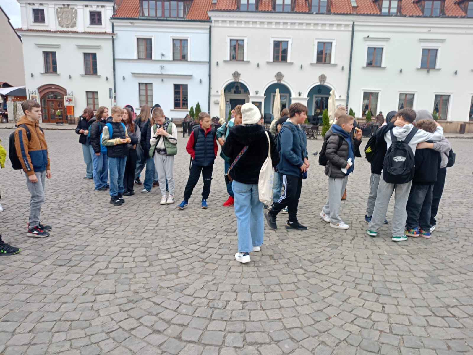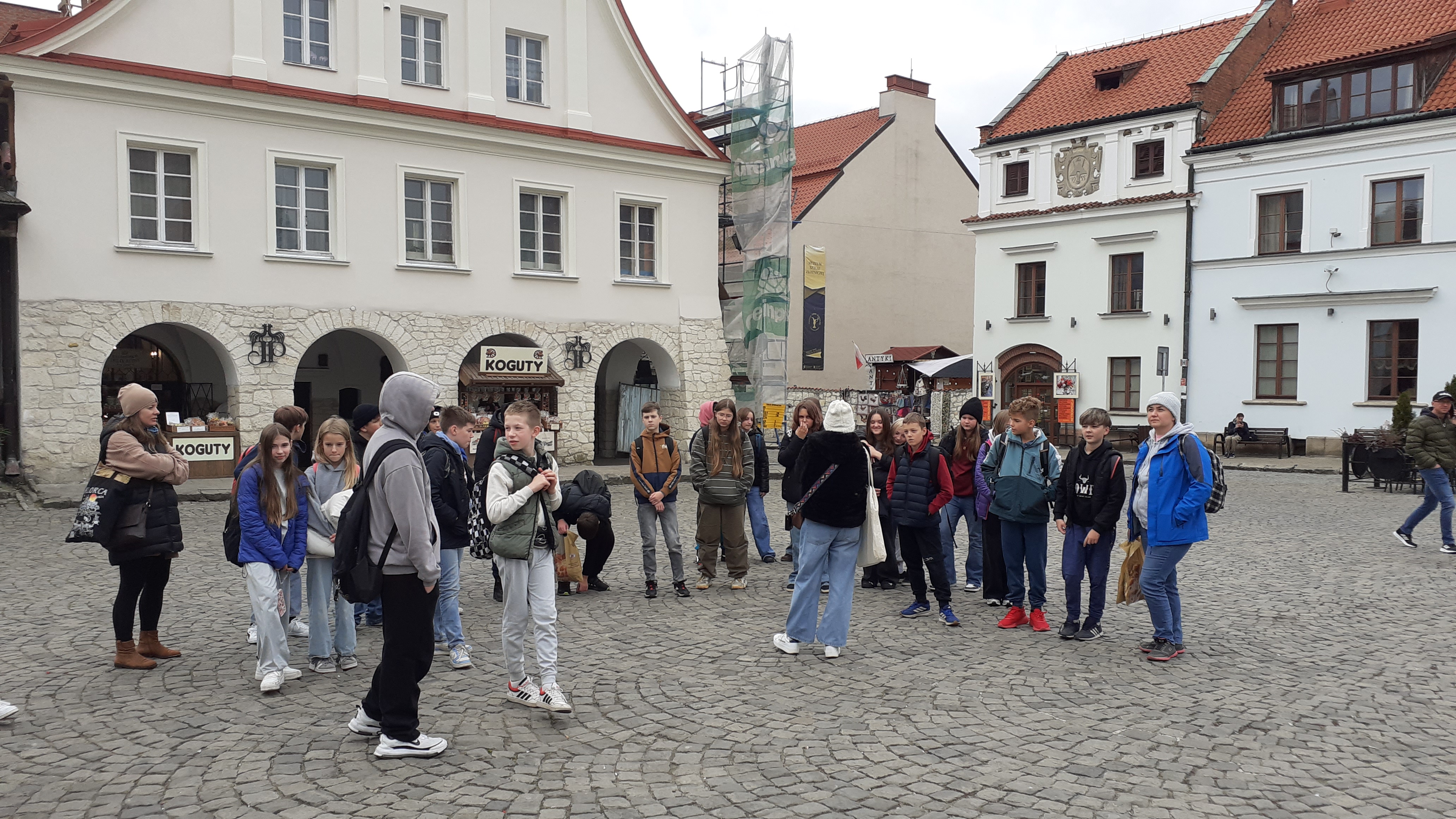 Ostatnim punktem atrakcji była gra terenowa. Podzieleni na grupy, uczniowie mieli za zadanie rozwiązywać zagadki i odnajdywać ukryte wskazówki w różnych zakątkach Kazimierza. Rywalizacja była zacięta, ale wszyscy świetnie się bawiliśmy, a na koniec każda drużyna otrzymała drobne upominki.