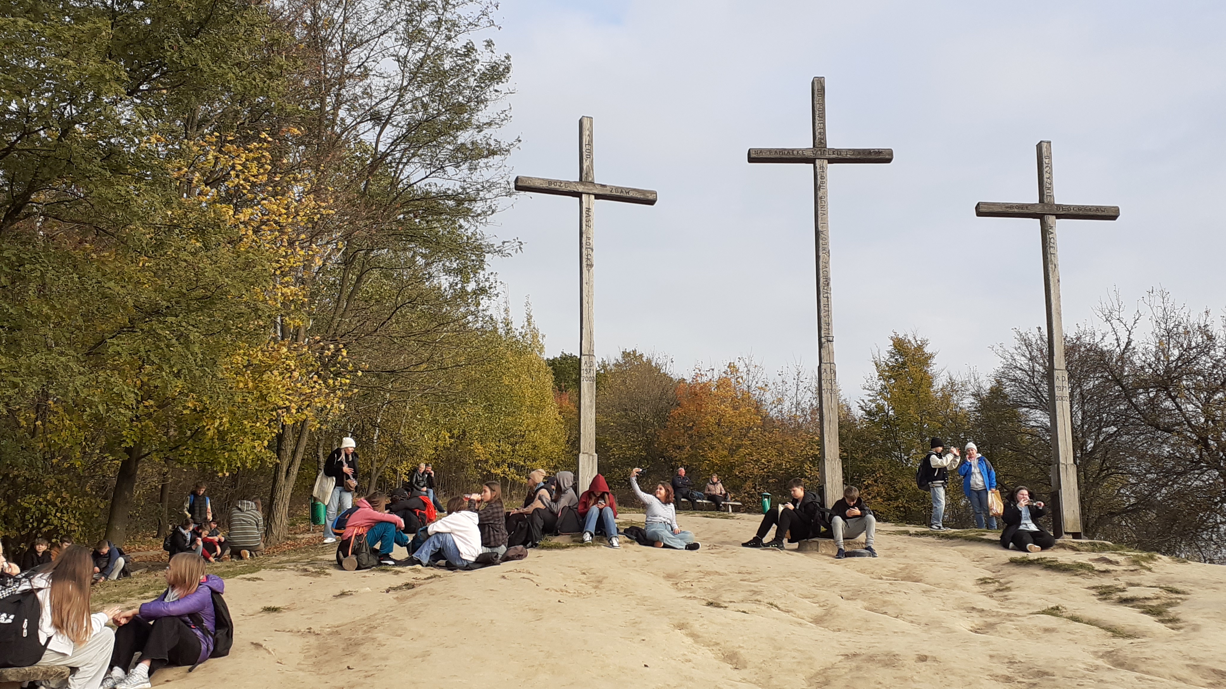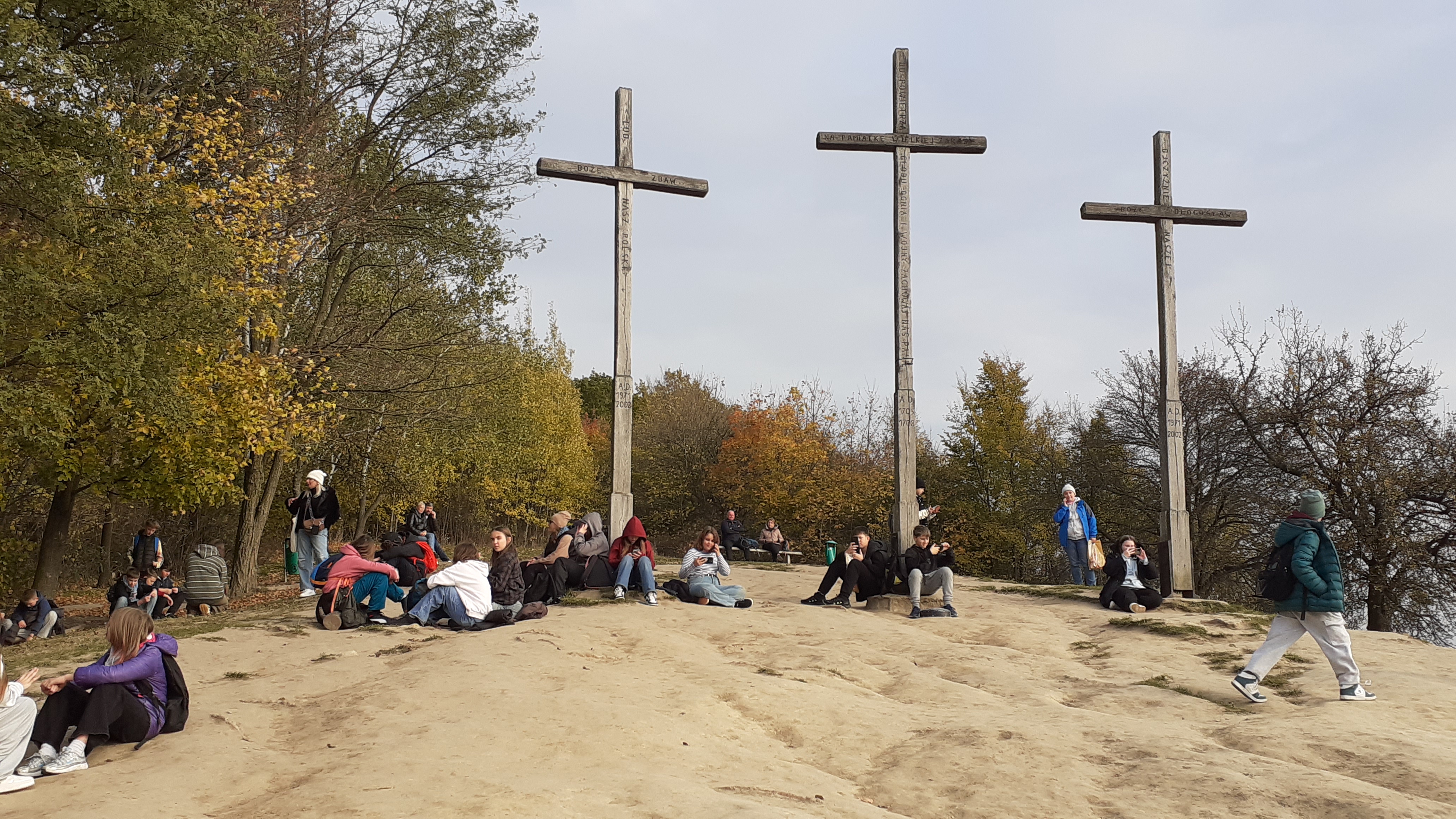 Następnie wyruszyliśmy w drogę do Kazimierza Dolnego. Tam rozpoczęliśmy od wizyty na rynku, który zachwycił nas swoimi zabytkowymi kamienicami i niepowtarzalnym klimatem. Kolejnym punktem programu było zdobycie Góry Trzech Krzyży, jednego z najbardziej charakterystycznych punktów Kazimierza. Podziwialiśmy również Kościół Farny położony przy rynku.