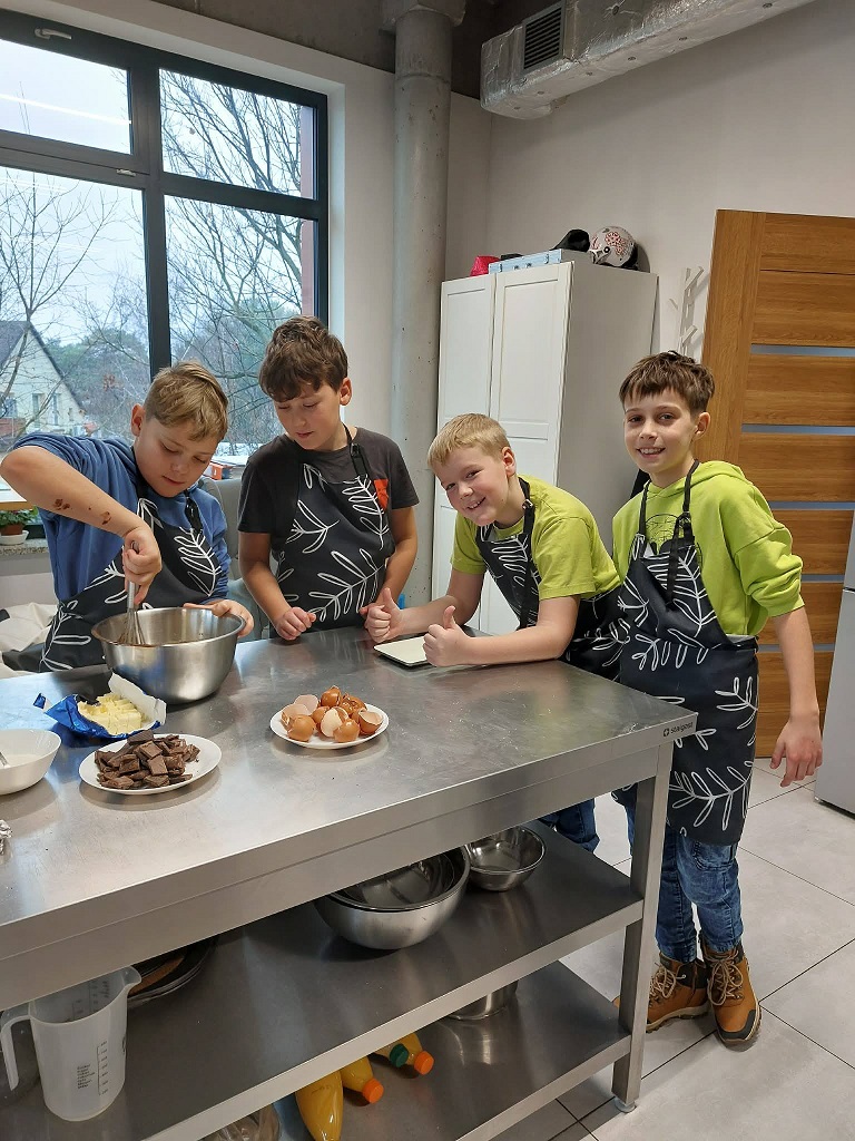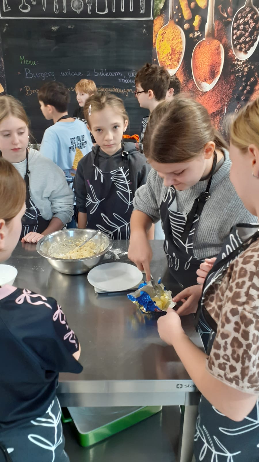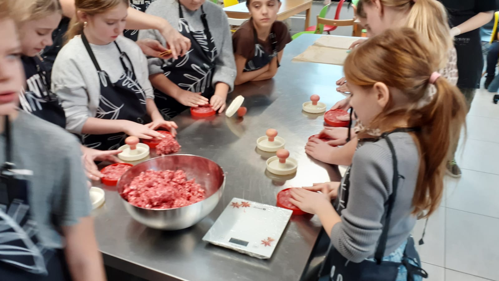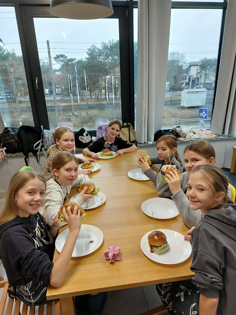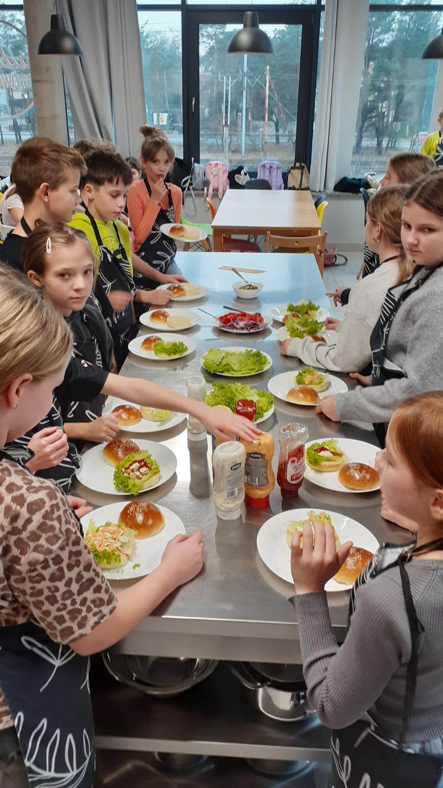 Na początku grudnia klasa 4a wybrała się na warsztaty kulinarne do wyjątkowej szkoły o nazwie "Radość gotowania". Wycieczka odbyła się w ramach programu "Wyjście z klasą" i została w całości sfinansowana przez Powiat Otwocki. Młodzi kucharze samodzielnie i od podstaw przygotowali burgery wołowe z domową bułką oraz upiekli przepyszne brownie. W czasie kulinarnych wyzwań wykazali się niezwykłą koncentracją i dyscypliną godną programu "Master Chef". Wszystko udało się perfekcyjnie i było przepyszne. Zapraszamy do obejrzenia galerii smakowitych zdjęć!
