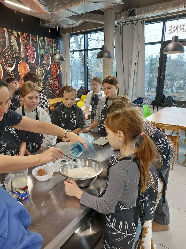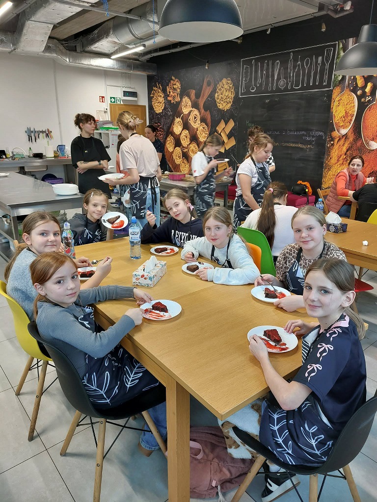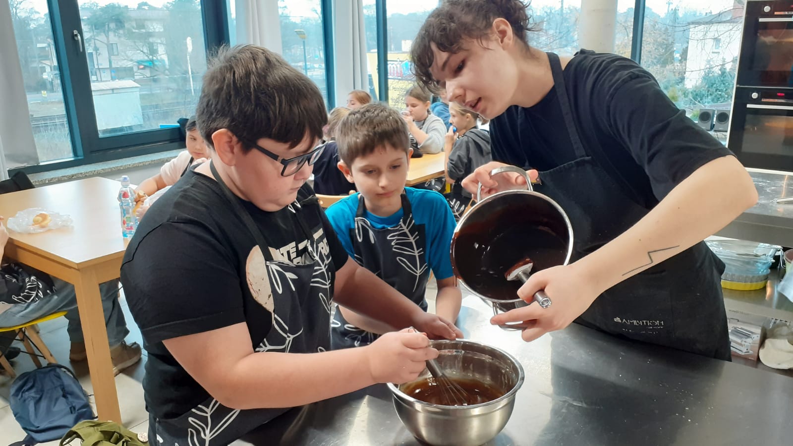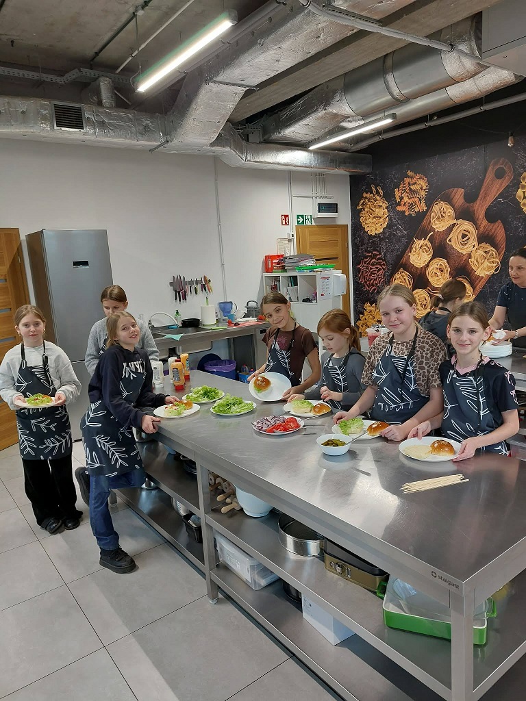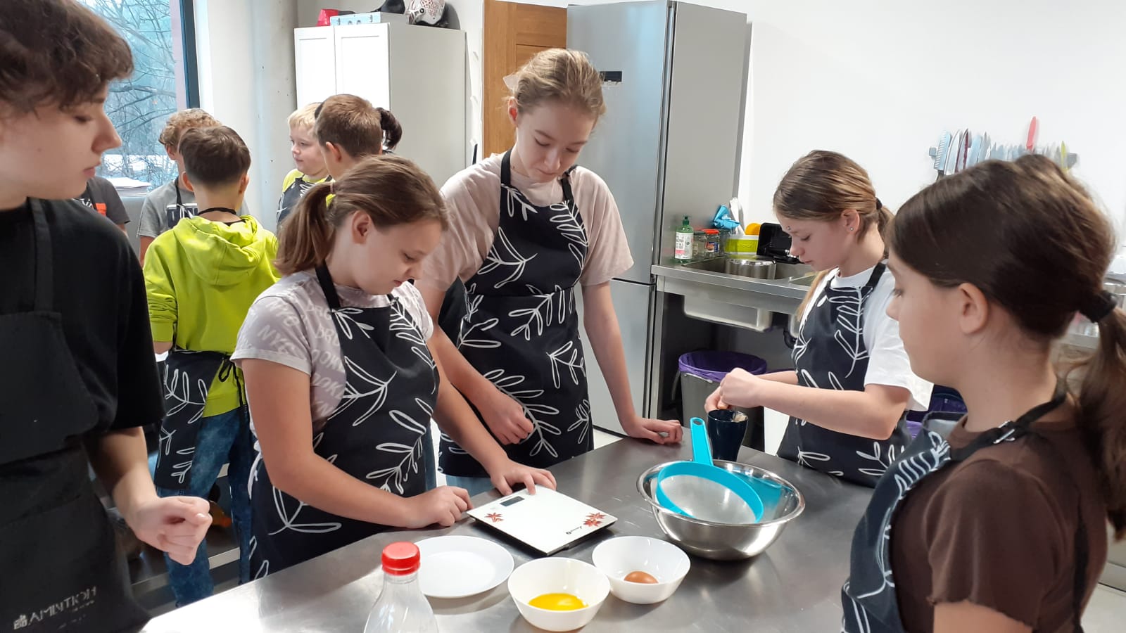 Na początku grudnia klasa 4a wybrała się na warsztaty kulinarne do wyjątkowej szkoły o nazwie "Radość gotowania". Wycieczka odbyła się w ramach programu "Wyjście z klasą" i została w całości sfinansowana przez Powiat Otwocki. Młodzi kucharze samodzielnie i od podstaw przygotowali burgery wołowe z domową bułką oraz upiekli przepyszne brownie. W czasie kulinarnych wyzwań wykazali się niezwykłą koncentracją i dyscypliną godną programu "Master Chef". Wszystko udało się perfekcyjnie i było przepyszne. Zapraszamy do obejrzenia galerii smakowitych zdjęć!